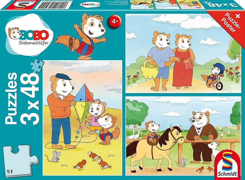 3x48 Teile Kinderpuzzle von Bobo Siebenschläfer Puzzlemaße: 3x 26,3 x 17,8 cm Verpackungsmaße: 27,5 x 19,1 x 3,6 cm, 350 g Kinder und Kleinkinder bevorzugen bunte Konturpuzzles und Rahmenpuzzles oder die tollen Puzzle-Box-Sets mit Metallkoffer. In einer großen...