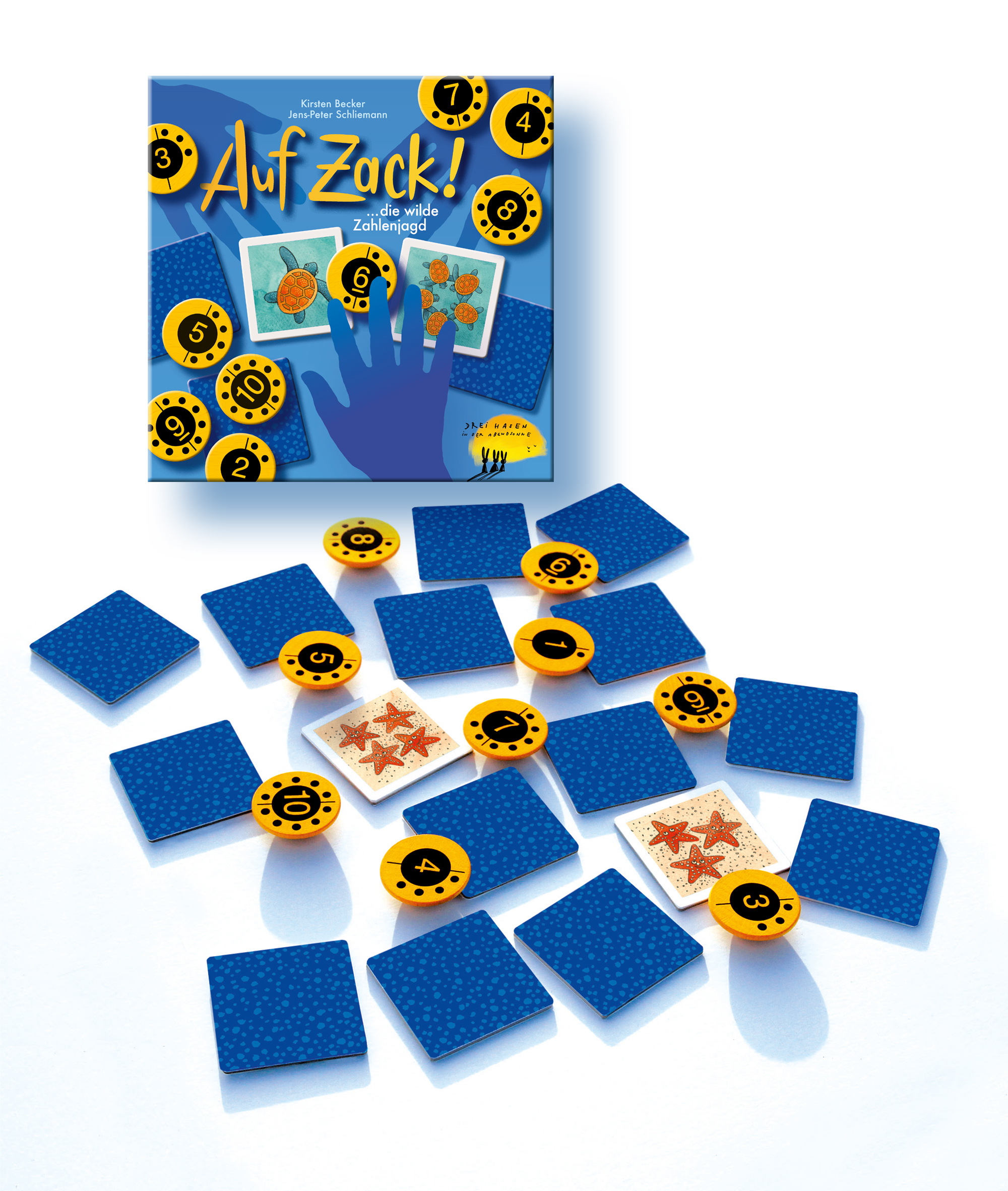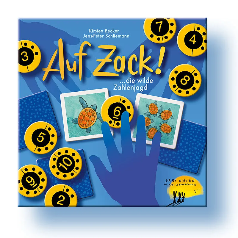 Auf Zack!Wer greift, schnappt oder packt die richtige Zahlenscheibe am schnellsten? Alle 44 Kärtchen und 10 wackelige Holzscheiben liegen auf dem Tisch. Der erste Spieler deckt zwei beliebige Kärtchen auf. Sind es die gleichen Motive?Dann nichts wie los: Alle ...