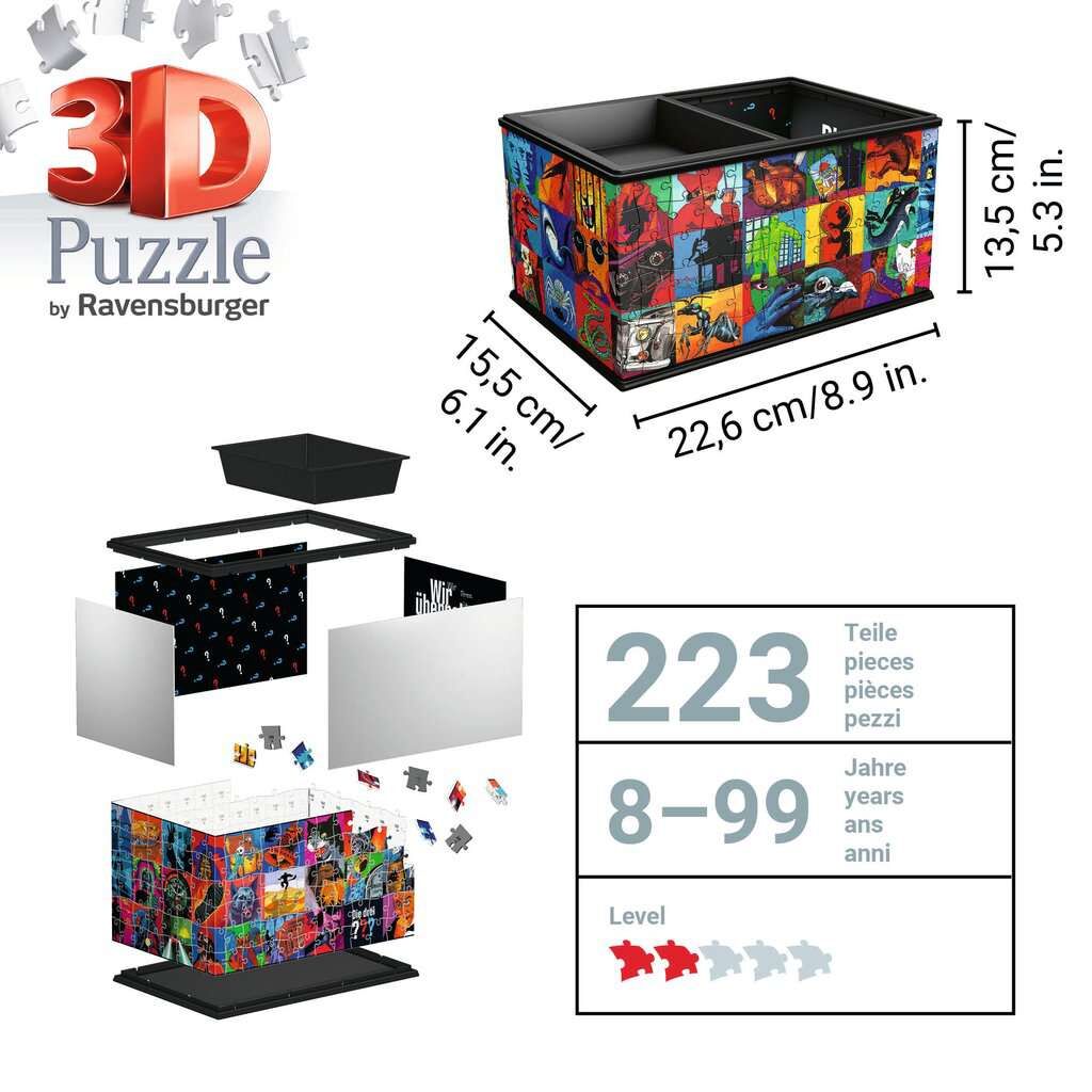 3D Puzzlespaß mit echtem WOW-Effekt!Ein Muss für alle "Die drei ?" Fans, die gerne Puzzeln und Platz für Ihren Krims-Krams suchen! Diese Box im "Die drei ?" Design ist der Hingucker in jedem Kinderzimmer und bietet Platz für wahre Schätze. Die Truhe besteht au...