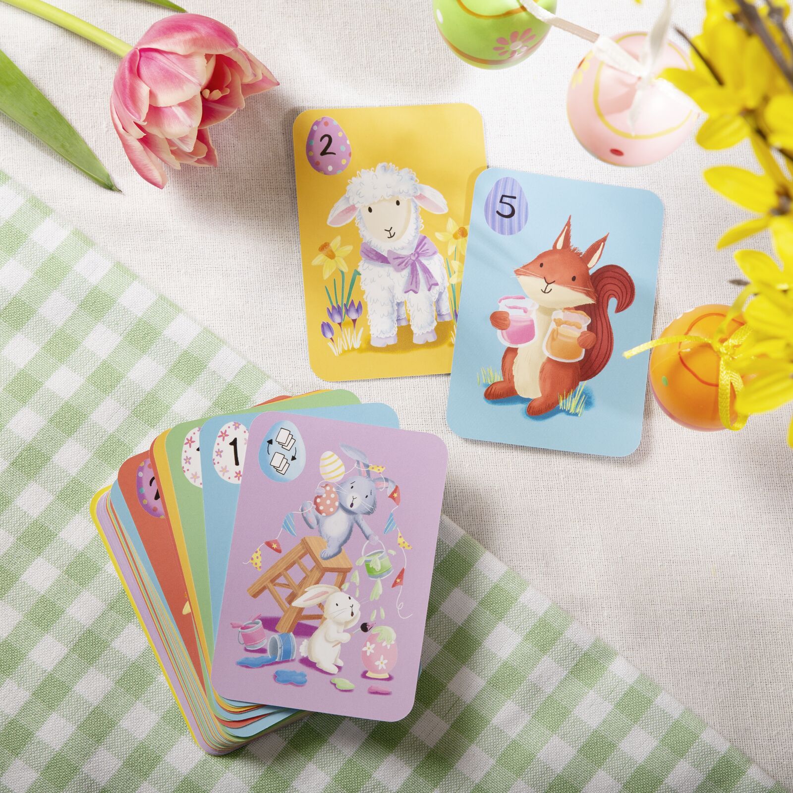 Wer hilft den Osterhasen und legt am schnellsten seine Karten ab? Ein fröhliches Oster-Kartenspiel für die ganze Familie! Wer hilft den Osterhasen? Kurz vor Ostern sind noch längst nicht alle Eier versteckt, und die anderen Tiere müssen mithelfen, um das Oste...