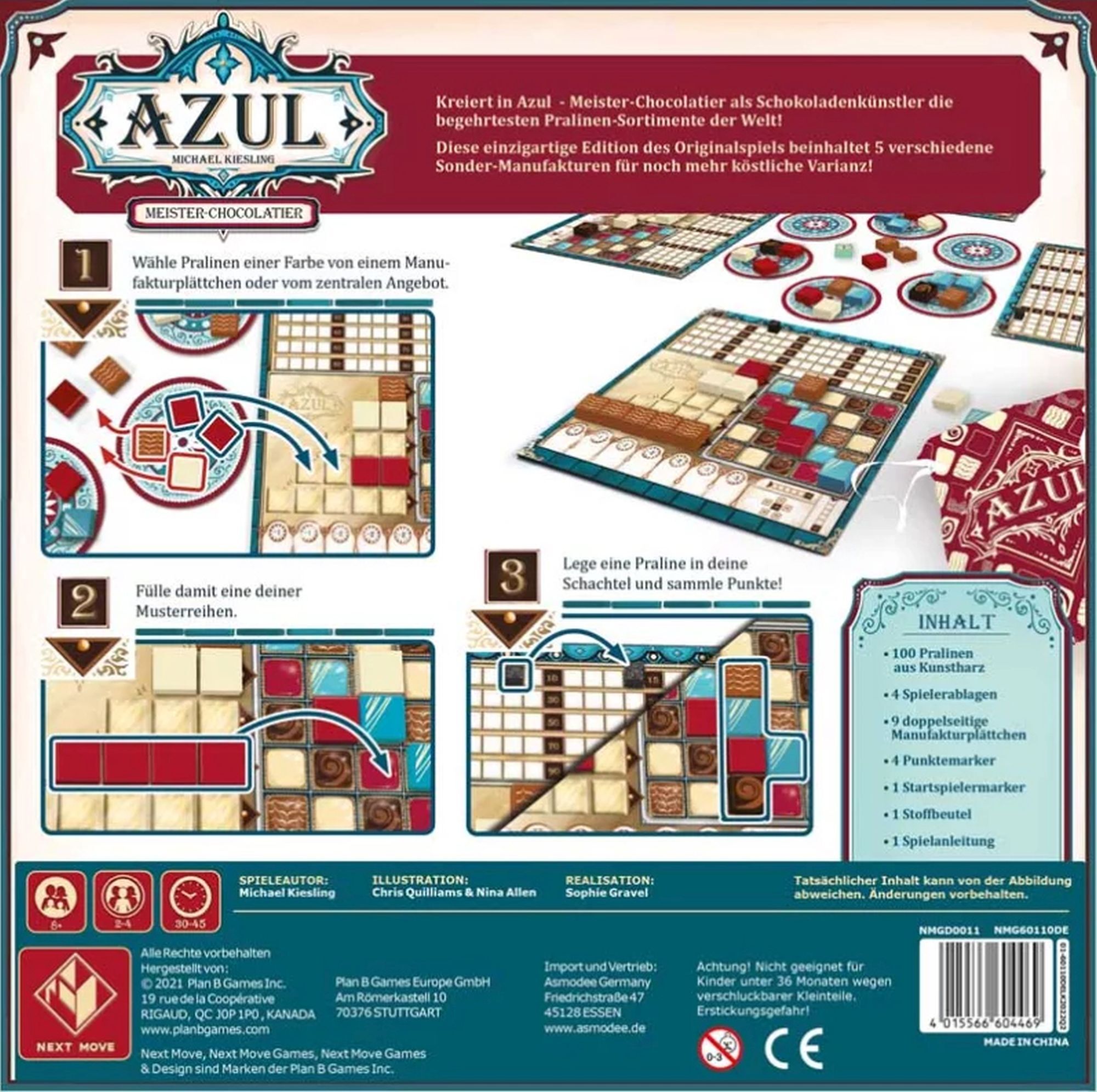 Azul Meister-Chocolatier Kreiert die begehrtesten Pralinen-Sortimente der Welt! Azul: Meister-Chocolatier ist eine limitierte Sammleredition des vielfach preisgekrönten Spiele-Bestsellers Azul. In Azul: Meister-Chocolatier kreieren die Spieler als Schokoladenk...