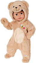 BABY born Bär Kuschelanzug 43cm Huch, ist das der BABY born Bär? Nein, es ist BABY born. Mit ihrem Bären-Onesie sieht sie ihrem besten Freund aber auch zum Verwechseln ähnlich. In dem Anzug aus kuscheligem Material mit Bären-Kapuze kann sie gemeinsam mit Teddy...