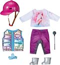 BABY born Deluxe Reitoutfit 43cm Für einen Tag im Stall braucht die kleine Reiterin das richtige Outfit: Ein langärmliges Pferde-Shirt, eine Weste um sich beim Ausritt warm zu halten, eine Reithose und Reitstiefel um sicher im Sattel zu sitzen. Ein passender H...