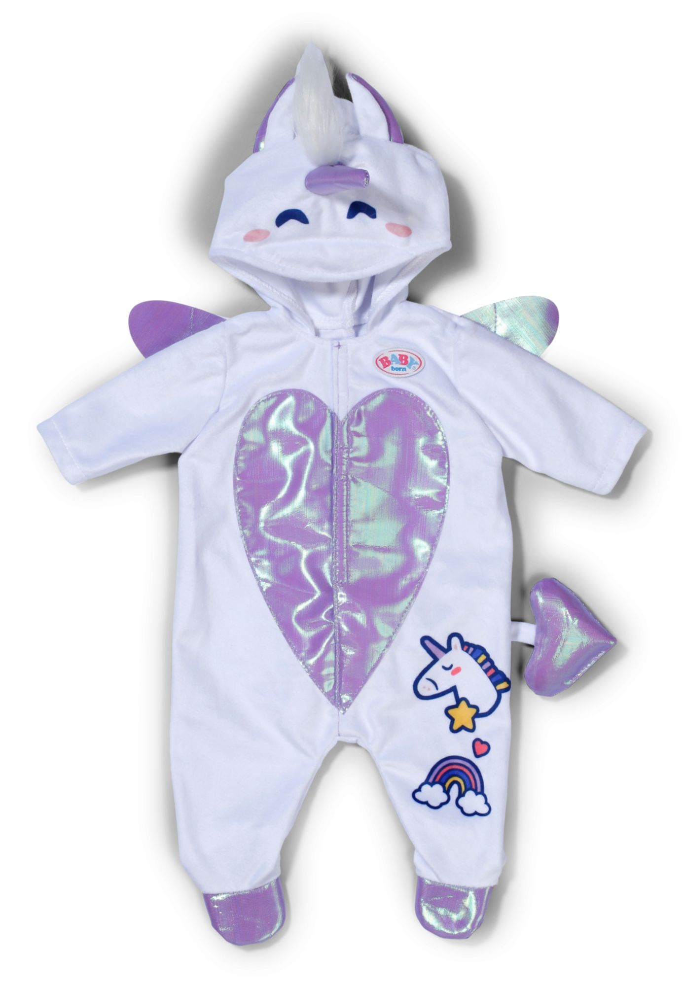 BABY born Einhornanzug mit Kapuze, Stickereien und funkelnden Details für 43cm Puppen