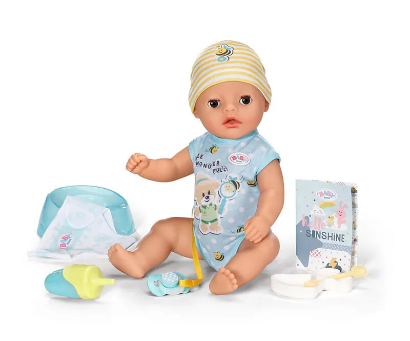 BABY born Little Boy 36cm BABY born Soft Touch Little mit 7 lebensechten Funktionen, die alle ohne Batterien funktionieren, ist durch ihren weichen und mobilen Körper sehr einfach zu bespielen und bietet ein realistisches Eltern-Kind-Rollenspiel für Kinder ab ...