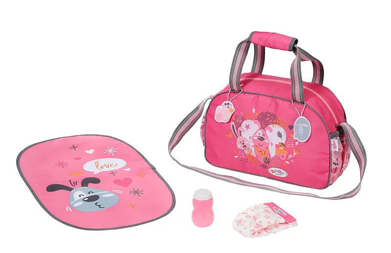 Zapf BABY born Wickeltasche ''BABY born freut sich genauso wie ihre tierischen Freunde auf der Wickeltasche auf jeden Ausflug. Ups, da ist vor Aufregung was ins Höschen gegangen. Gut, dass wir die praktische Wickeltasche immer mit dabei haben, denn die enthält...