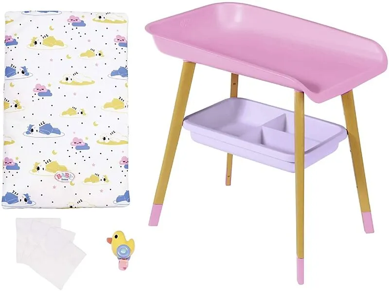 Zapf 829998 BABY born Wickeltisch 'Schief gewickelt? Das kann mit dem Wickeltisch von BABY born nicht passieren. Der Tisch im skandinavischen Design hat Beine in Holz-Optik und fügt sich neben Hochstuhl und Kleiderstange gut ins Kinderzimmer ein. Während BABY ...