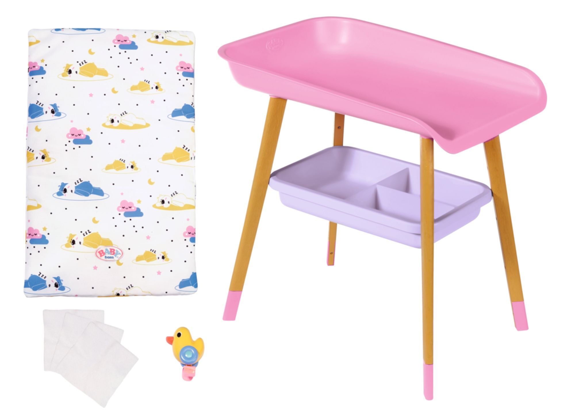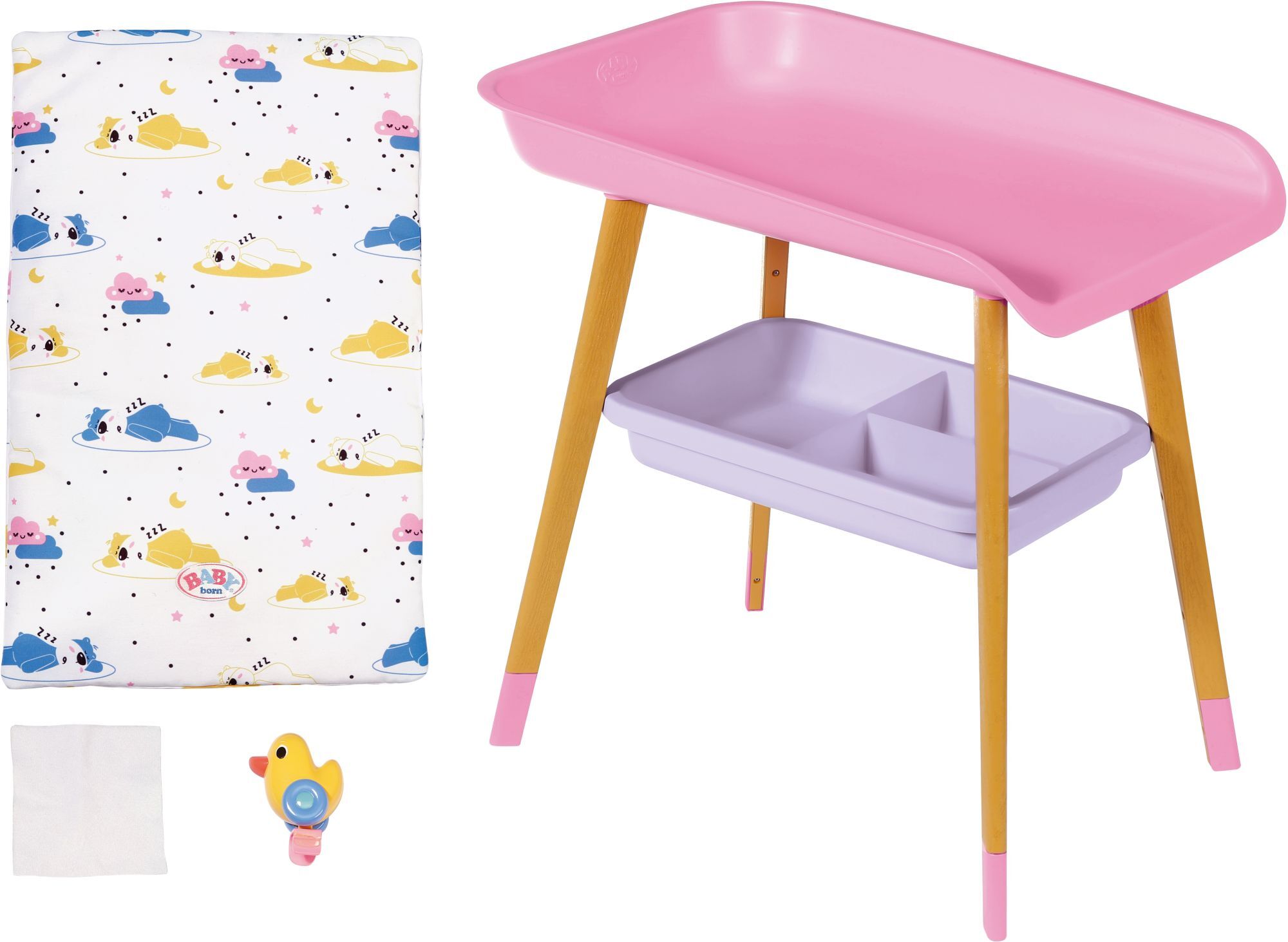 Zapf 829998 BABY born Wickeltisch 'Schief gewickelt? Das kann mit dem Wickeltisch von BABY born nicht passieren. Der Tisch im skandinavischen Design hat Beine in Holz-Optik und fügt sich neben Hochstuhl und Kleiderstange gut ins Kinderzimmer ein. Während BABY ...