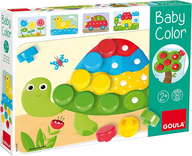 Lerne die Farben, in dem du die Holznägel auf jedem Blatt richtig einsetzt. 6 Blätter in verschiedenen Schwierigkeitsstufen und 20 Holznägel. Seit 75 Jahren bietet Goula sicheren pädagogischen Lernspaß. Goula steht für wunderschöne und altersgerechte Holzpuzzl...
