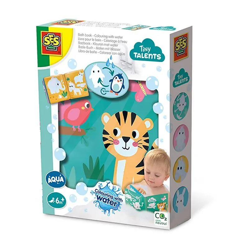 Ab in die Wanne und ran ans Malbuch! Dieses Bade-Buch Malen mit Wasser der Produktlinie Tiny Talents von SES Creative zaubert beim Duschen und Baden farbige Bilder ins Buch. Auf den Seiten des Buches sind zunächst weiße Flächen zu erkennen, die sich wie durch ...