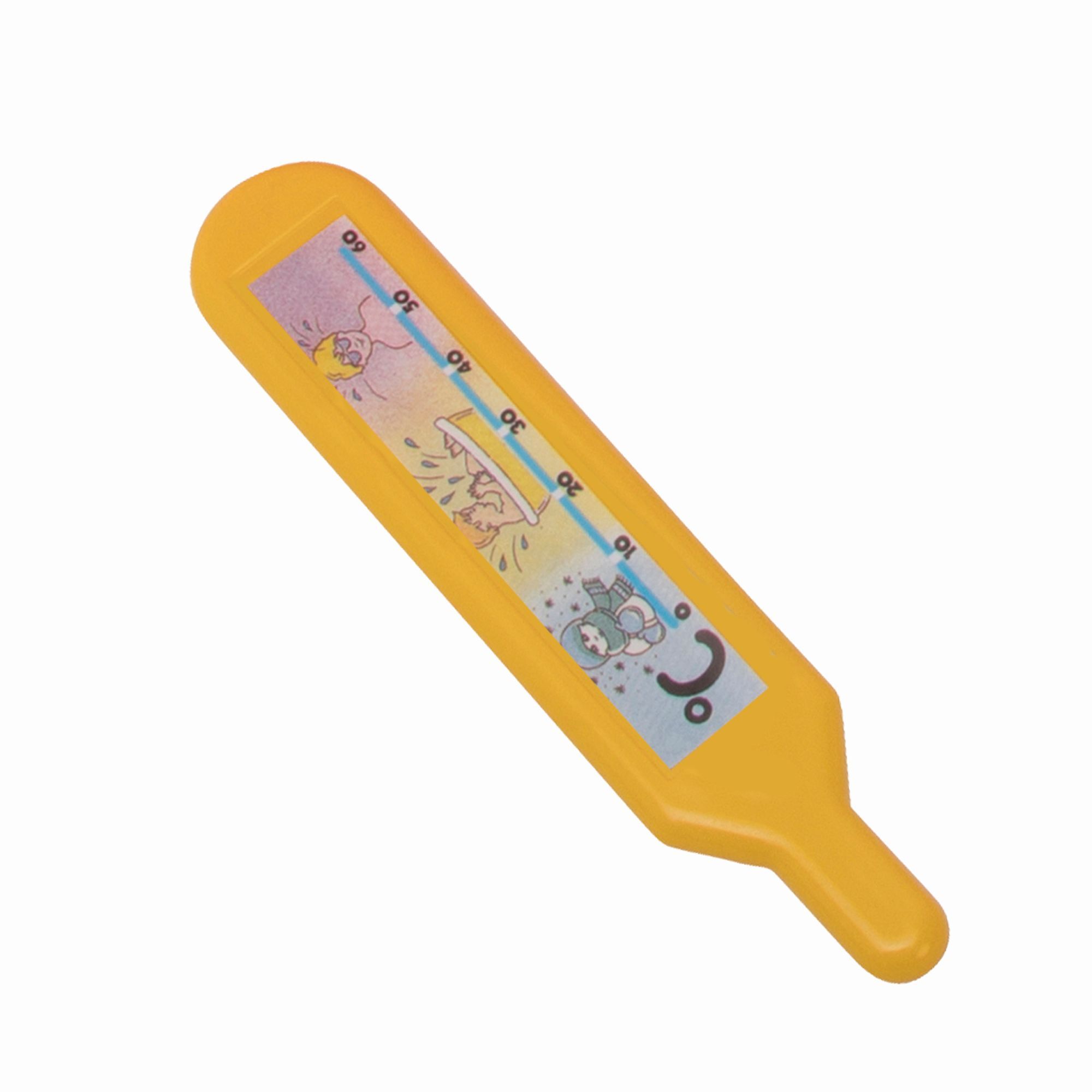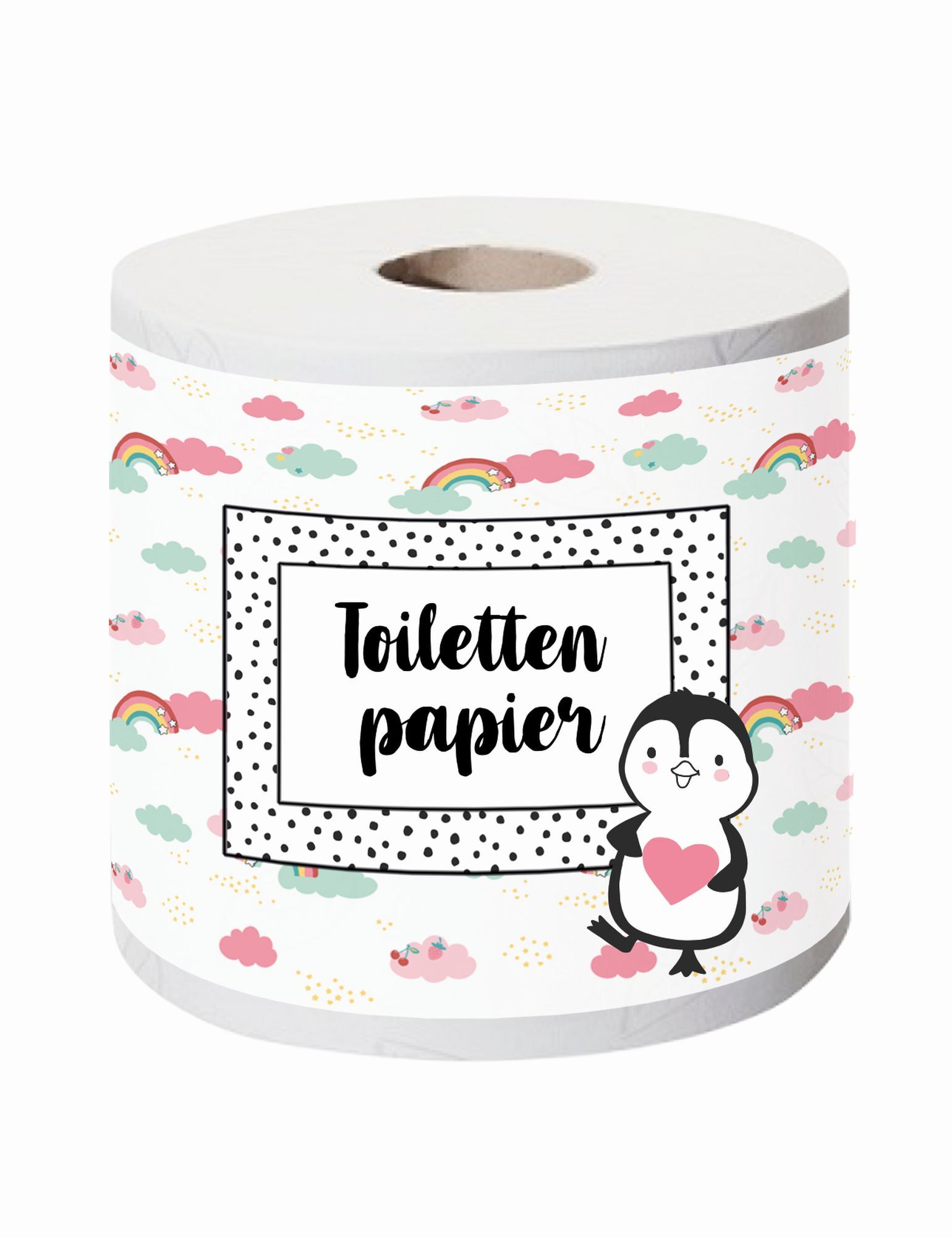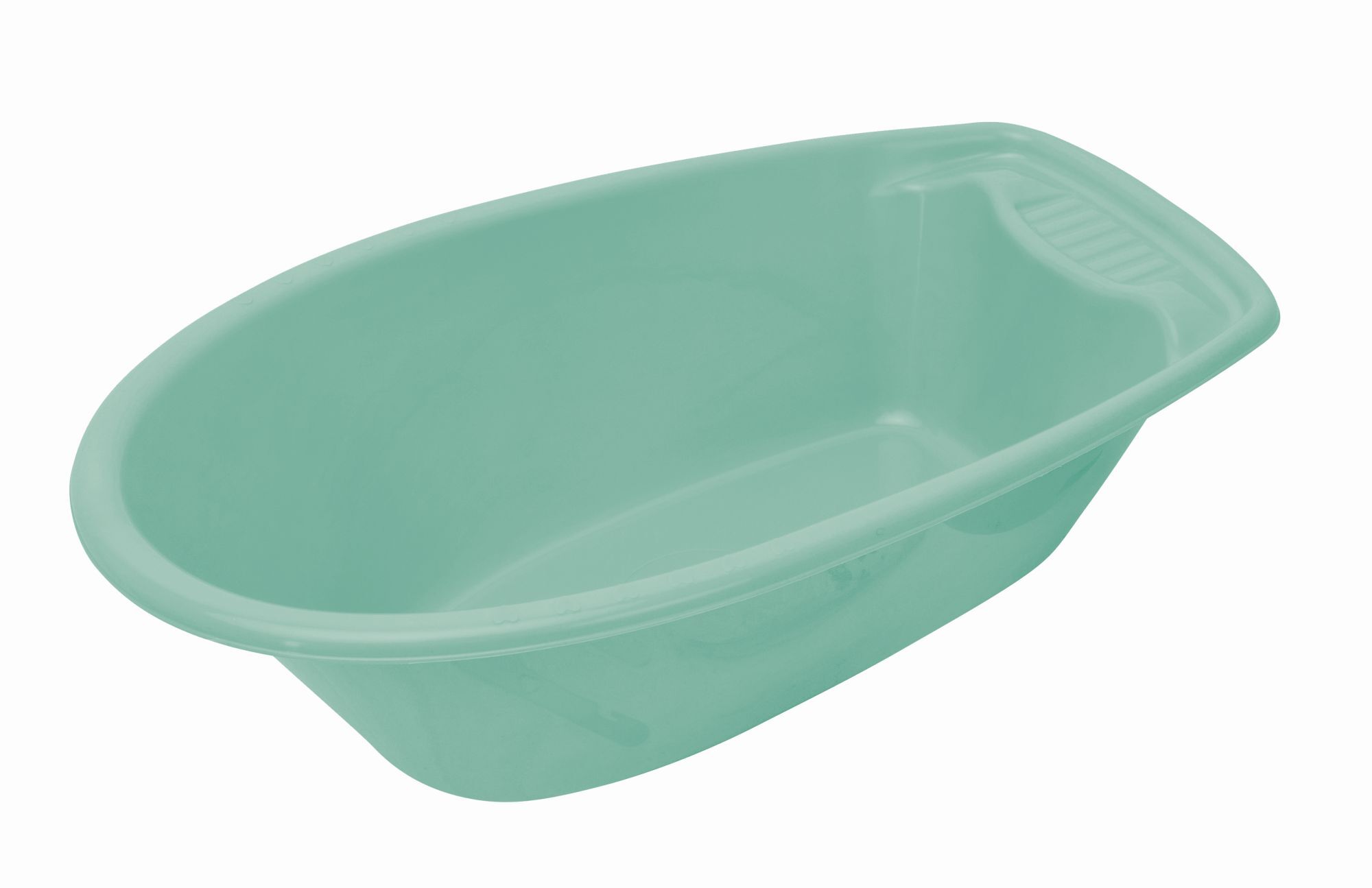 Badewanne aus hochwertigem Material und nützliche Accessoires: ein Schwämmchen, eine Bade-Pinguin, ein Badethermometer, ein Töpfchen, eine Windel, Toilettenpapier und eine Creme-Dose.