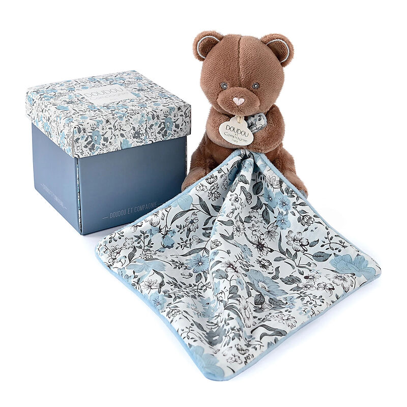 Kuschelweich ist der Bär mit seinem Schmusetuch und begleitet das Neugeborene vom ersten Tag an. Verpackt im dazu passenden Geschenkkarton.Maschinenwäsche bei 30° Grad. Grösse: 12 cm