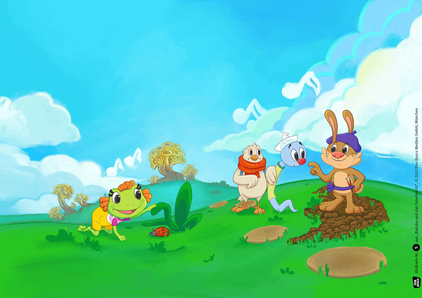 Eine Ostergeschichte aus dem Singeland: Bakabu und Co. helfen dem Osterhasen. Für Sprachförderung und Osterprojekte in Kindergarten, Kita & Grundschule. Ostern mit Bakabu und seinen Freunden: Wo steckt bloß das rote Ei? An einem schönen Frühlingsmorgen kom...