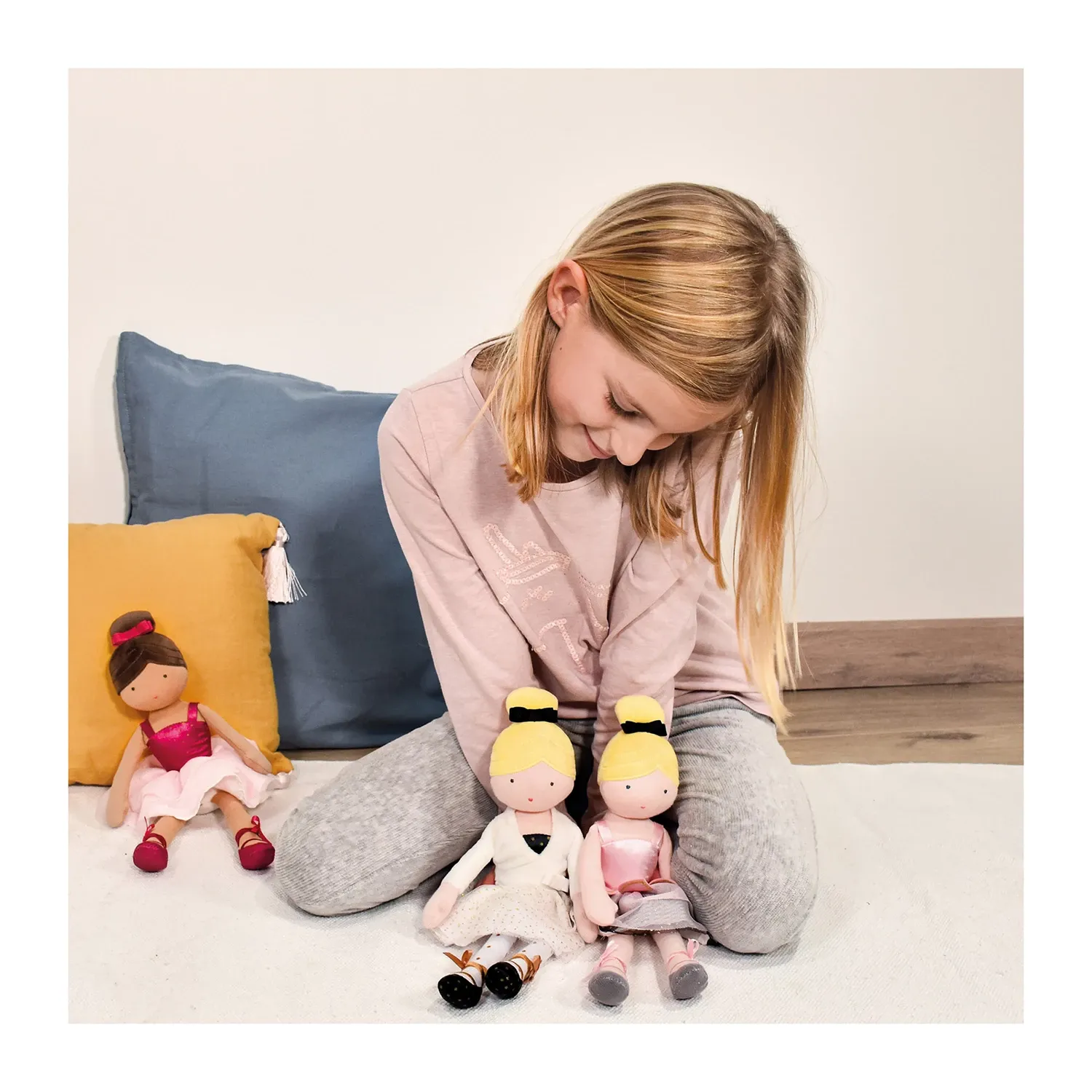 Eine echte kleine Ballerina mit blonden Haaren, hübschem weissen Tutu mit feinen goldenen Punkten und weissem Wickeltop. Verpackt im dazu passenden Geschenkkarton. Maschinenwäsche bei 30° Grad. Grösse: 35cm.