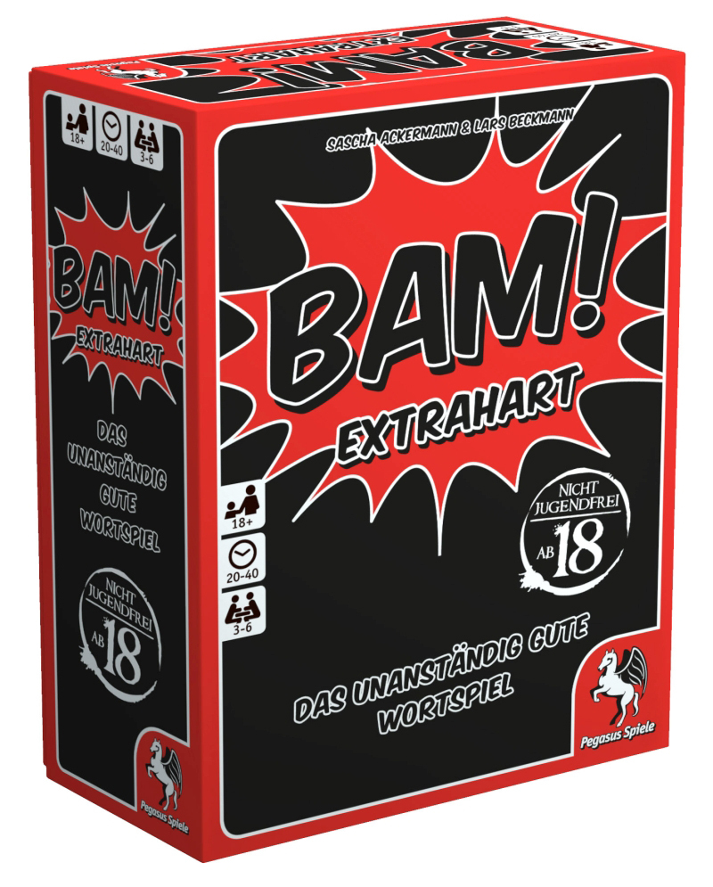 BAM! ist das freche Partyspiel, bei dem Schlag auf Schlag derbe bis geniale Wortspiele entstehen. Das beliebte Spielprinzip erschließt mit BAM! Extrahart neue Dimensionen der Unanständigkeit. Spieler ab 18 Jahren können hier als Grenzgänger des guten Geschmack...