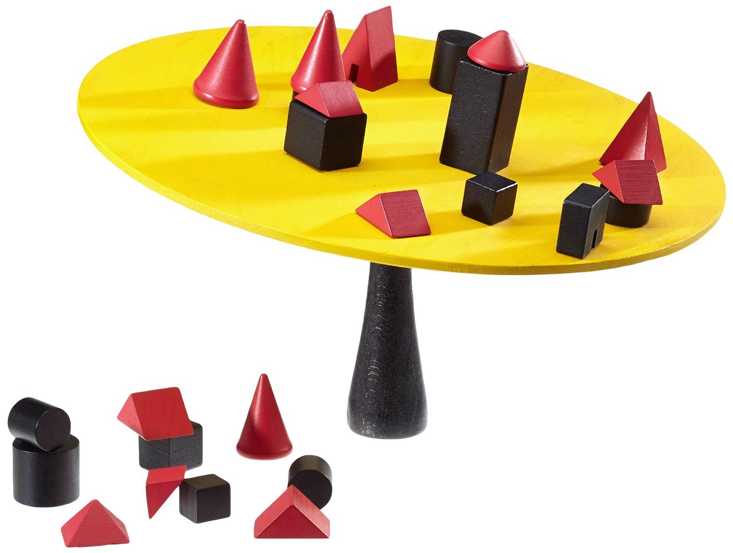 Eine Exkursion in die wunderbare Welt der Schwerkraft: Spielsteine unterschiedlicher Größe und Gewichte werden auf einer Holzplatte verteilt, die auf einem hohen Sockel ausbalanciert wird. Nach und nach werden die Steine heruntergenommen, wobei sich die Platte...