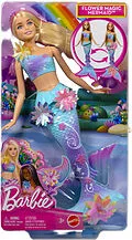 Barbie Flower Magic Meerjungfrauen-Spielzeugpuppe mit magischer Überraschungsblüte und perlenbesetztem Haarreif Mit der Barbie Flower Magic Meerjungfrauenpuppe blühenden Spaß erleben! Einfach den Hebel auf ihrem Rücken betätigen und immer wieder dabei zuzusehe...