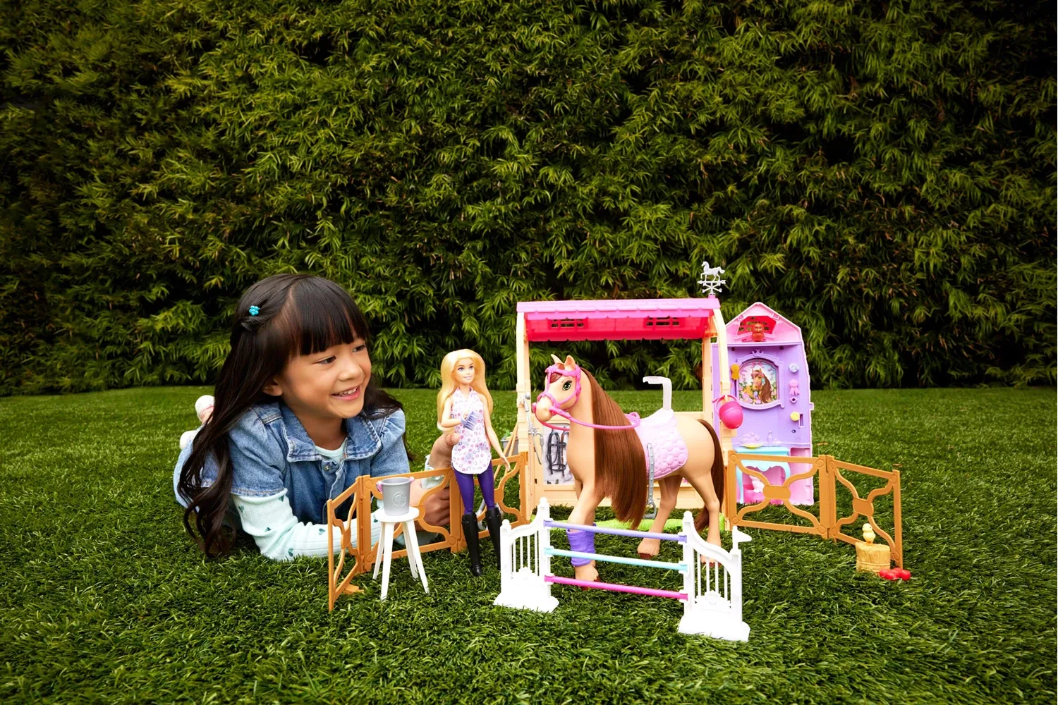The Ultimate Stable Dieses von der Netflix-Serie Barbie Mysteries: Das geheimnisvolle Pferdeabenteuer inspirierte Ultimativer Pferdestall-Spielset steckt mit mehr als 25 Teilen voller Spaß! Mit sechs Spielbereichen können Kinder der Barbie-Puppe dabei helfen, ...
