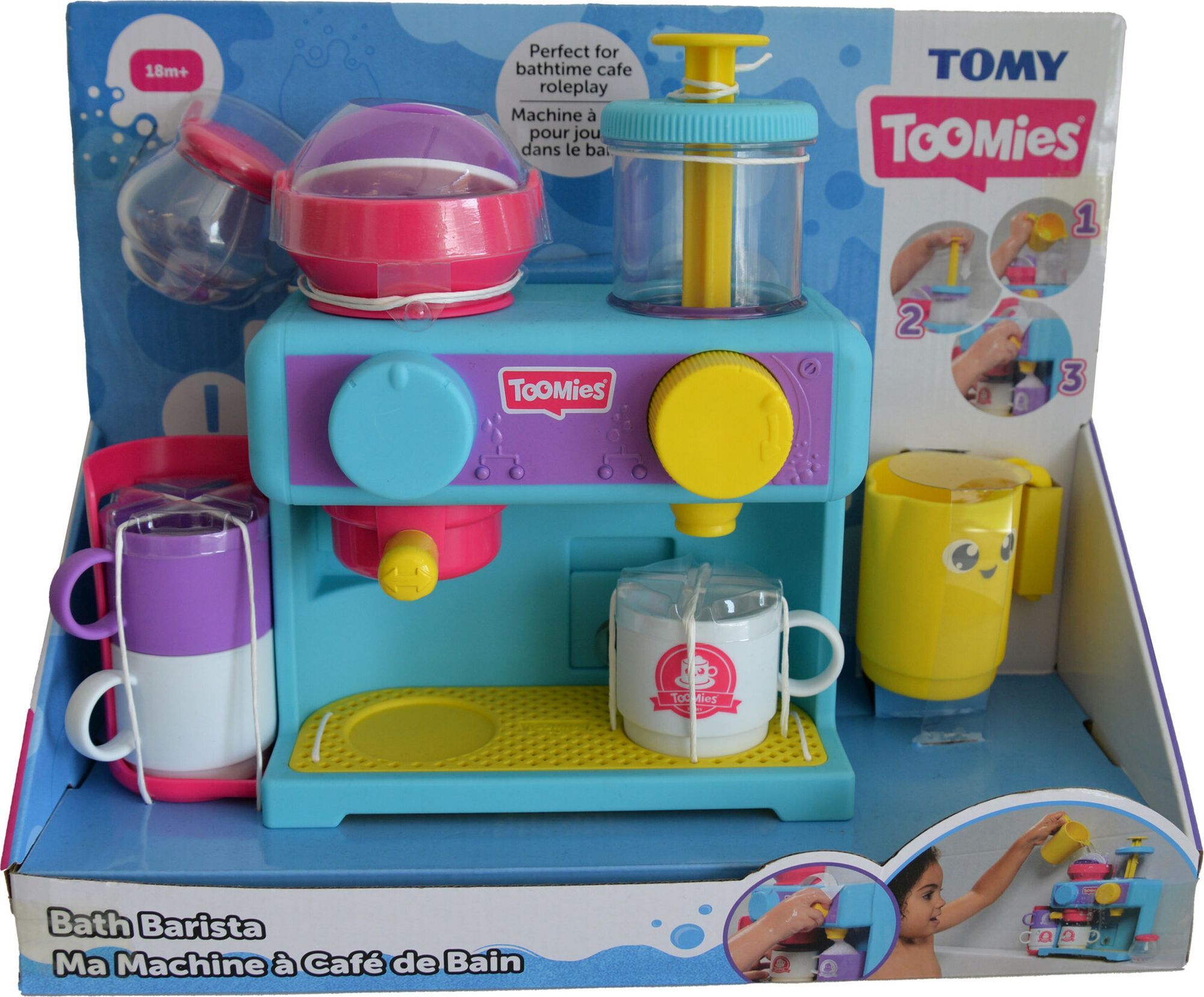 Schaumige Kaffees zur Badezeit! Die Kaffeemaschine für die Badewanne ist perfekt für ein Rollenspiel im Café! Enthalten sind die Kaffeemaschine, 3 Tassen, ein Krug und ein Shaker! Erzeugt schaumige Getränke in 1,2,3 Pumpstößen!