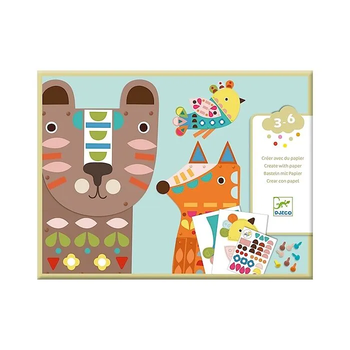 Ein Bastelspiel zum falten und kleben, um 3D-Bilder zu gestalten. Das Kind faltet Papier in verschiedenen Grössen und Farben und klebt sie mit doppelseitigen klebestreifen zusammen.