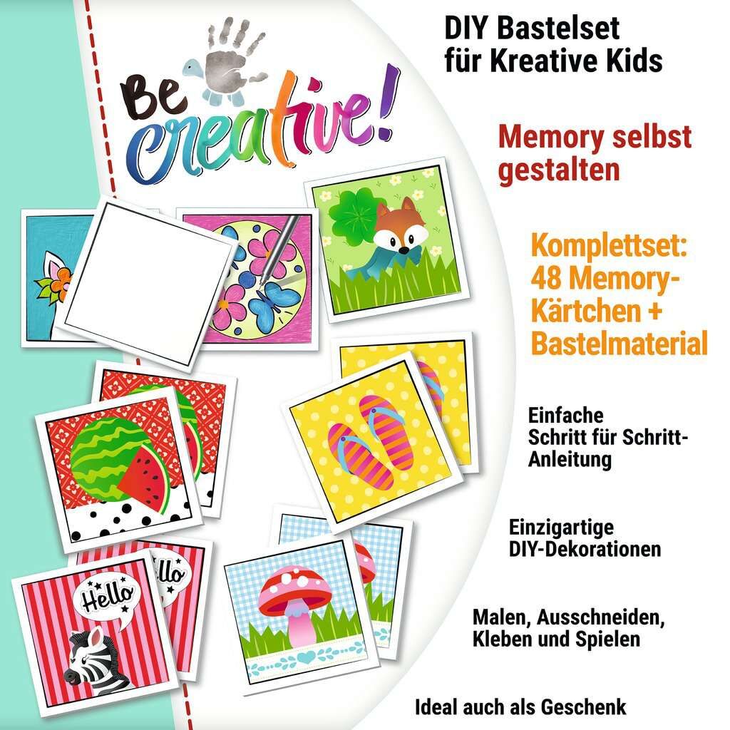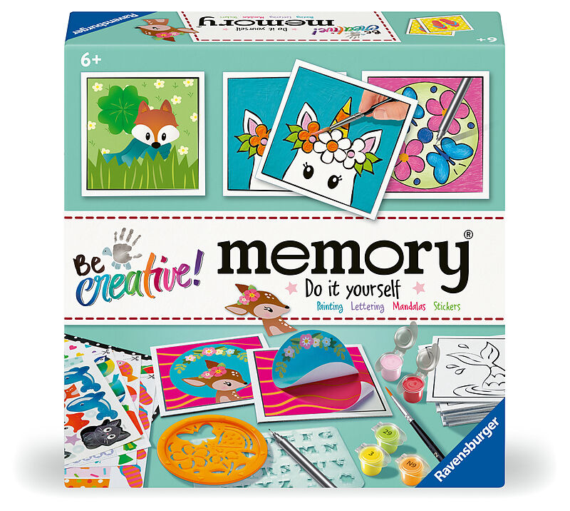Mit dem BeCreative-Bastelset memory® DIY von Ravensburger können Kinder ab 6 Jahren 48 kreative Memorykärtchen basteln. Am Ende stehen Freude, Stolz und ein Erfolgserlebnis, das die Lust am anschließenden Spielen des selbst gestalteten memory® weckt.Die gebast...