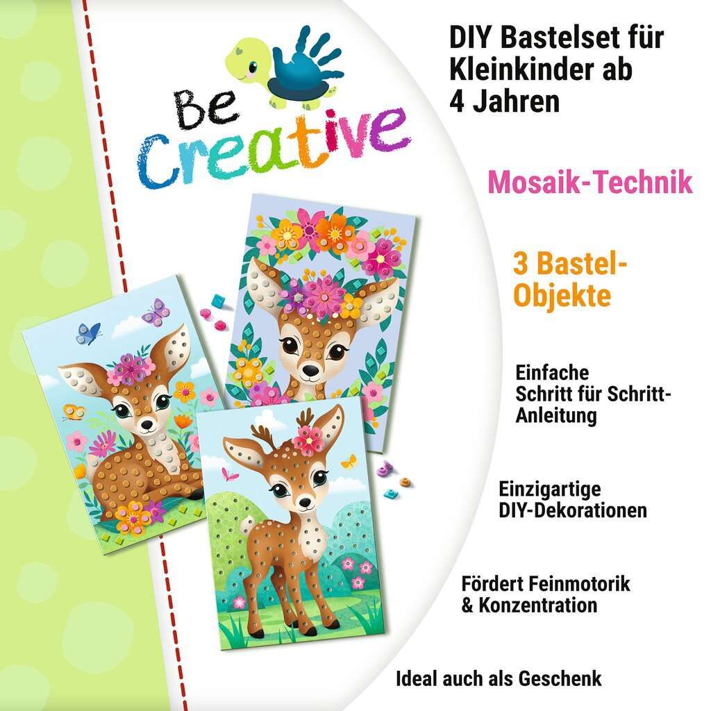 Mit dem BeCreative-Bastelset Mosaik Mein Bambi von Ravensburger können Kinder ab 4 Jahren 3 farbenfrohe Mosaikbilder basteln. Die entstandenen Bilder können immer wieder zu neuen Kunstwerken umgesteckt werden. Am Ende stehen Freude, Stolz und ein Erfolgserlebn...