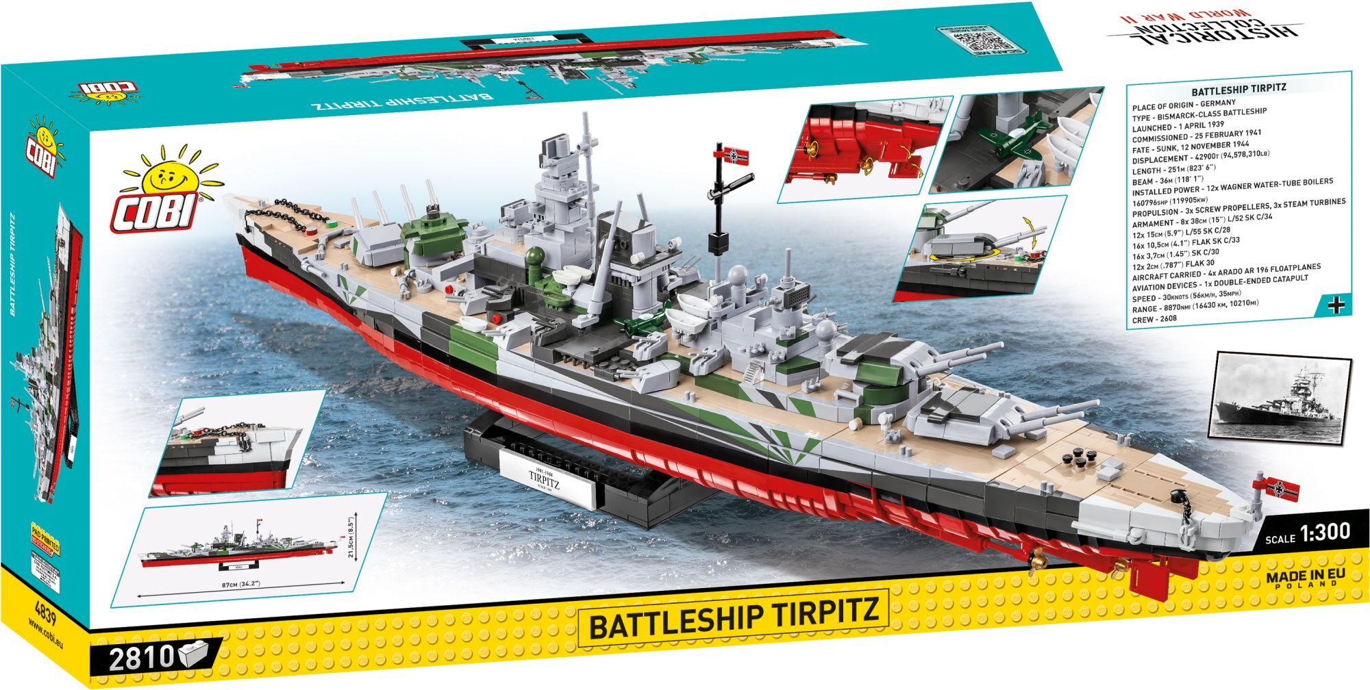 COBI BATTLESHIP TIRPITZ Scale: 1:300 COBI Schlachtschiff Tirpitz | Klemmbaustein Baukasten Schiff-Modell 1/300 Die Tirpitz ist ein deutsches Schlachtschiff aus dem Zweiten Weltkrieg, ein Zwillingsschiff der ''Bismarck'' und das größte Schlachtschiff der deutsc...