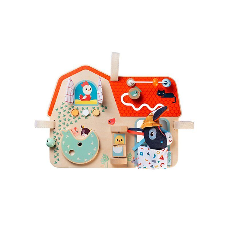 Die Bauernhof-Aktivitäten-Platte. Diese Platte aus Holz stellt einen Bauernhof dar, welcher reich an Aktivitäten und Materialien ist, um die Kleinen bei Ihren Entdeckungen glücklich zu machen. Die hübschen Illustrationen erzählen die Geschichte der Bauernhofti...
