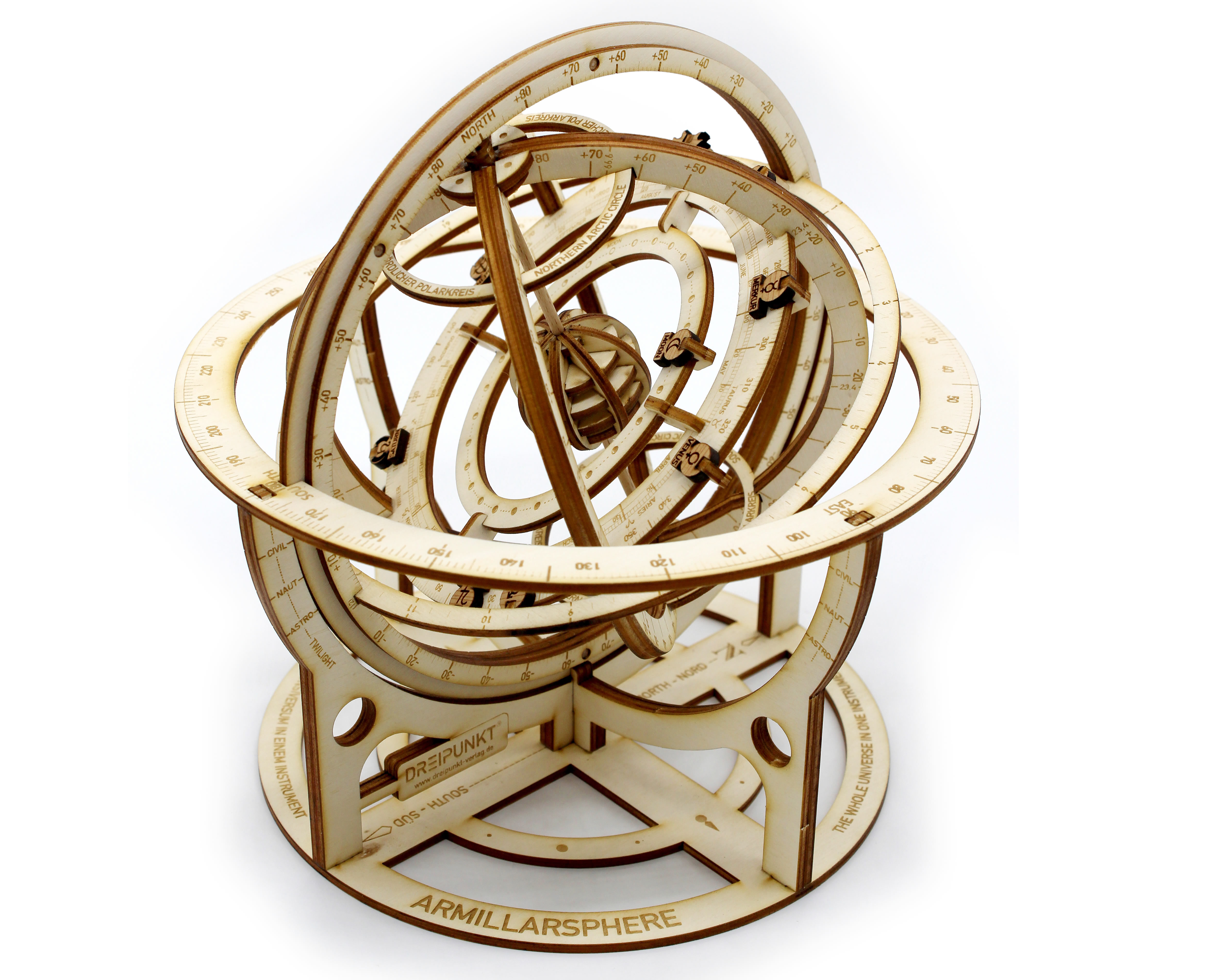 Die Armillarsphäre (auch 'Weltmaschine' genannt) ist ein komplexes mechanisches Gerät, das der Darstellung der Bewegung astronomischer Körper dient. Die Position der Planeten, der Sonne und des Mondes können so für jeden Ort der Erde eingestellt werd...