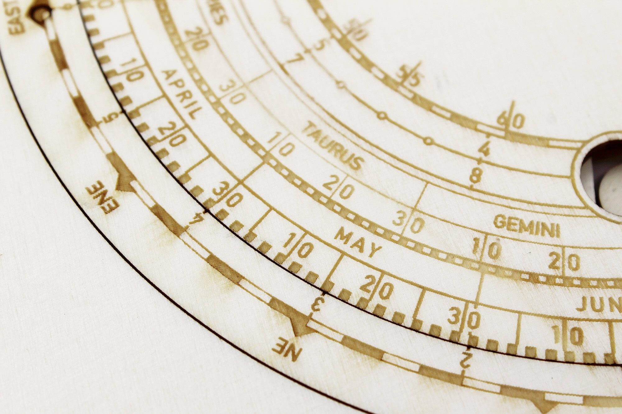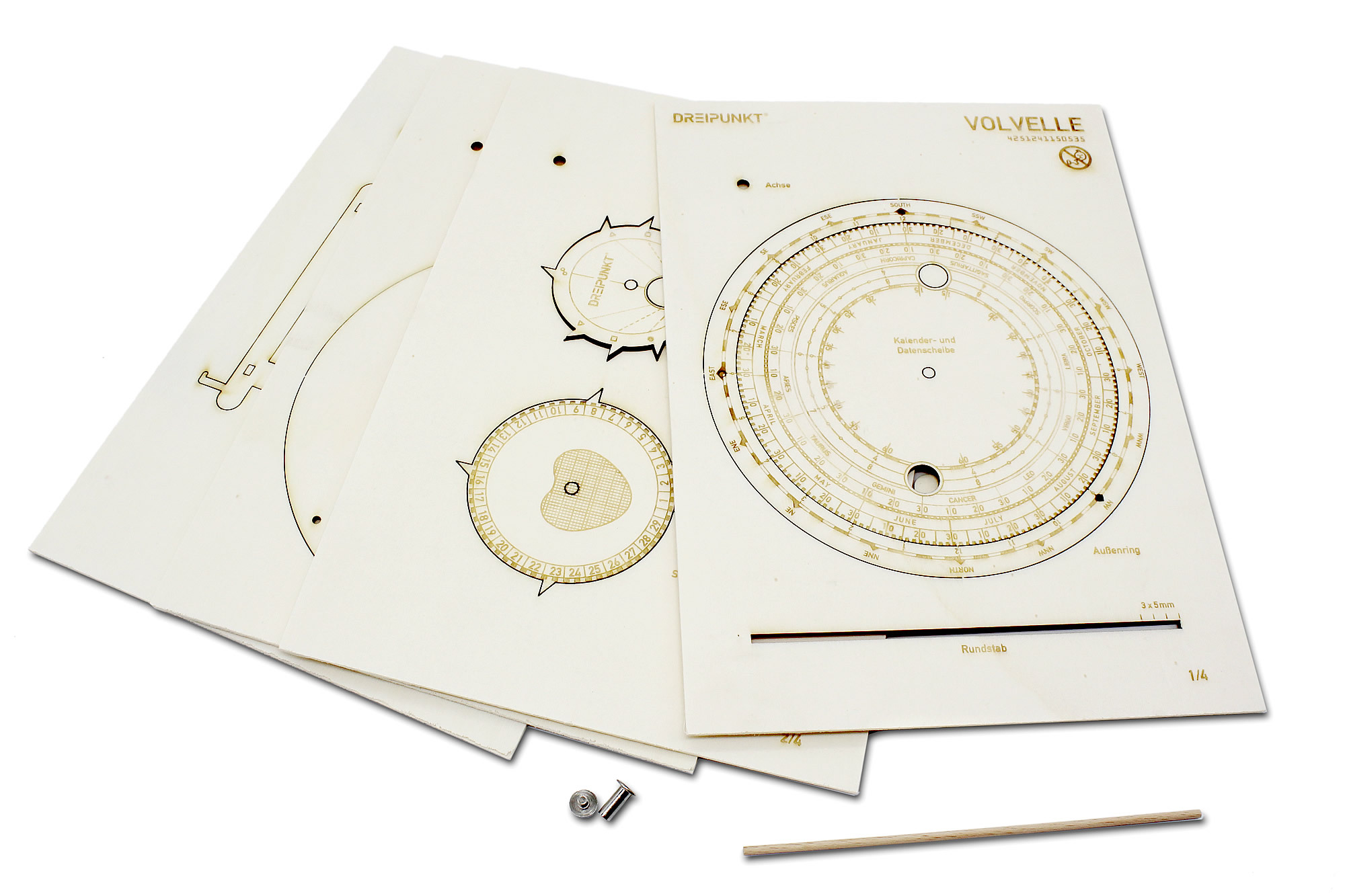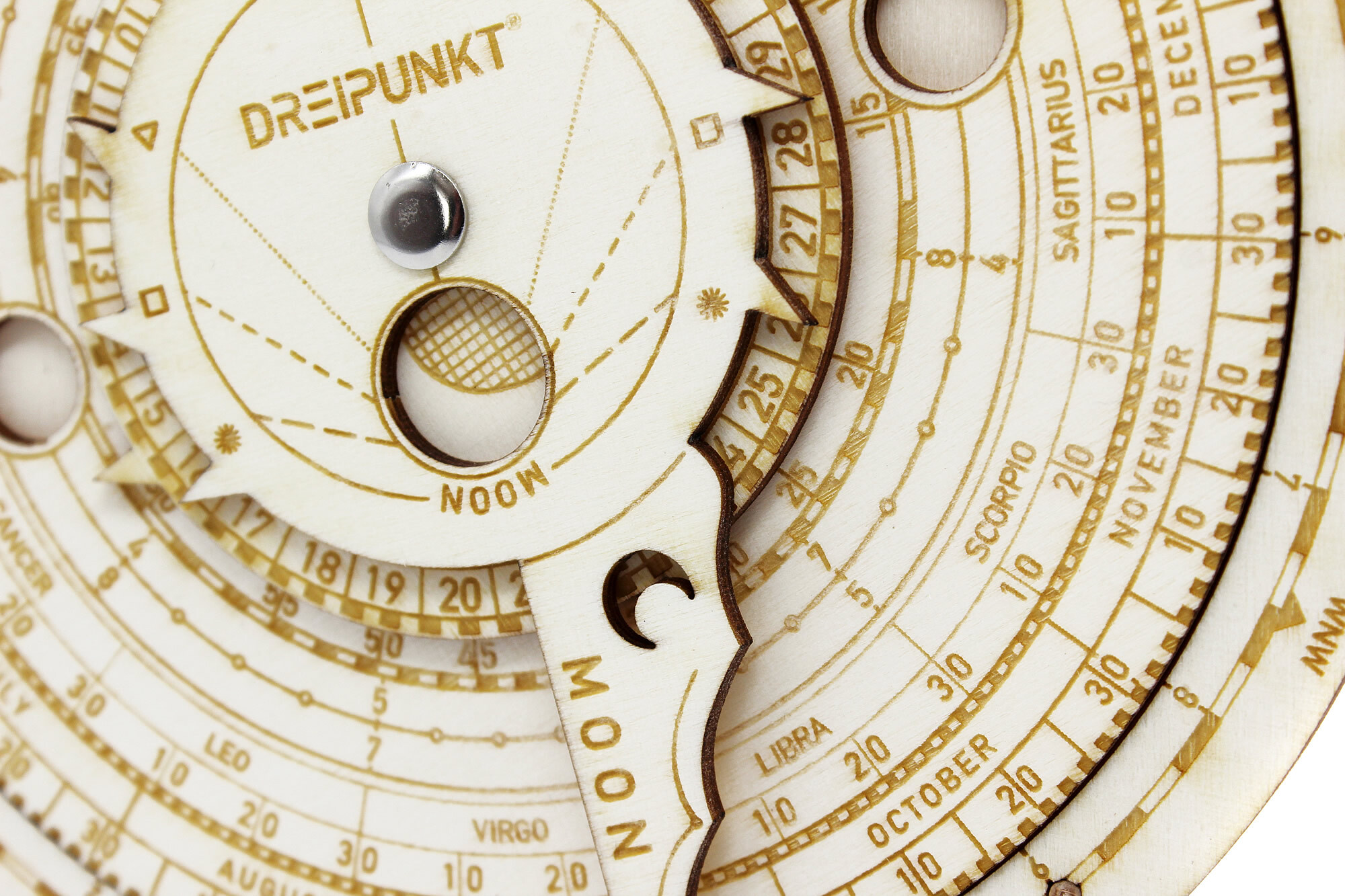 Holz-Modellbausatz einer funktionsfähigen Mond-Volvelle. Die Mond- bzw. Lunar-Volvelle ist ein astronomisches Werkzeug, das in der Vergangenheit zur Vorhersage und Bestimmung astronomischer Ereignisse diente. So können z.B. die Positionen von Sonne und Mond be...