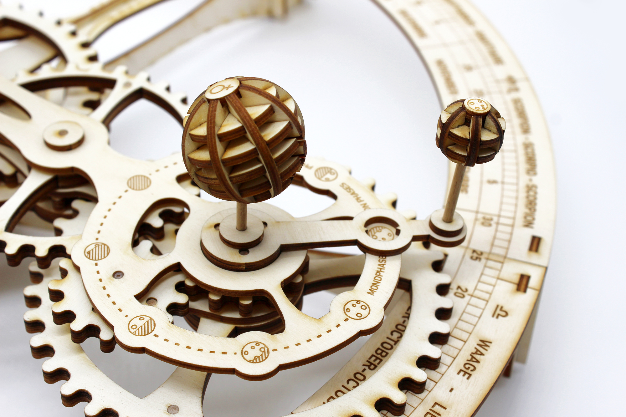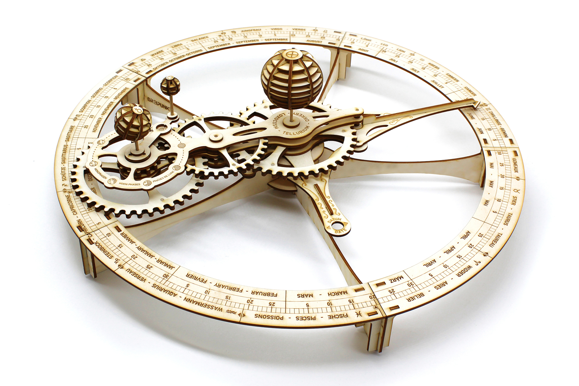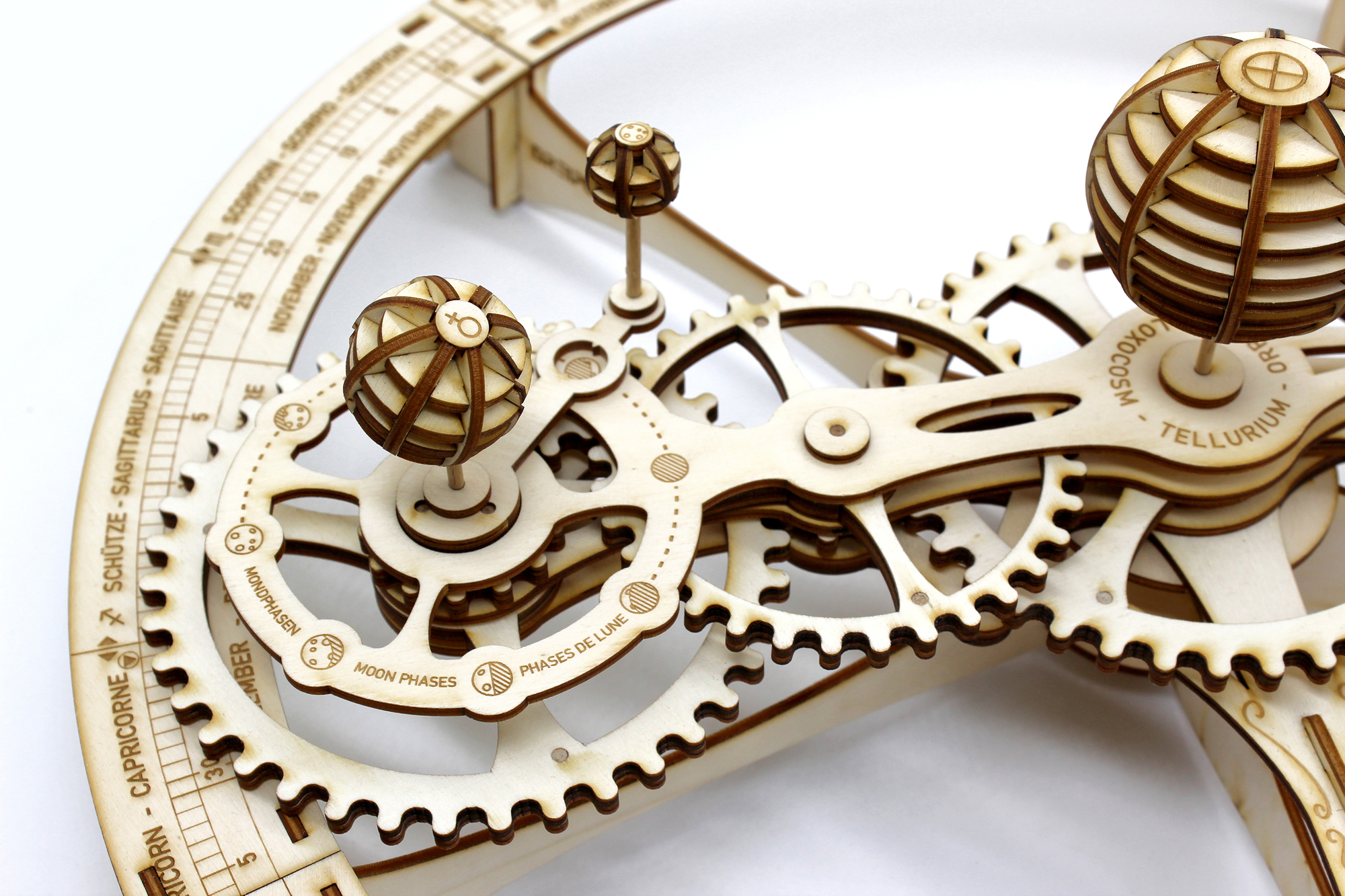 Ein Tellurium (auch: 'Planetenmaschine', Orrery oder Loxocosm) ist ein faszinierendes mechanisches Gerät, das die Bewegung von Planeten um die Sonne zeigt. In diesem Modell sind die Sonne, die Erde und der Mond dargestellt, so dass besonders die Mond...