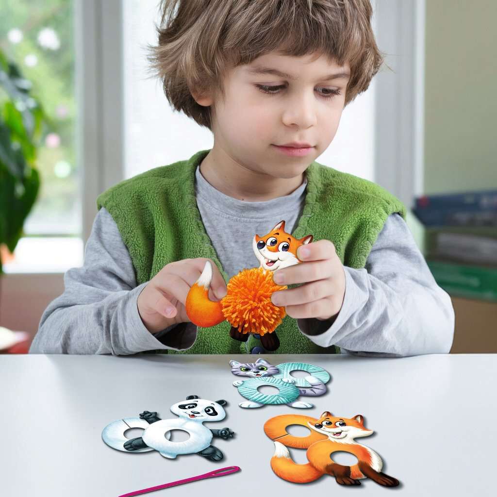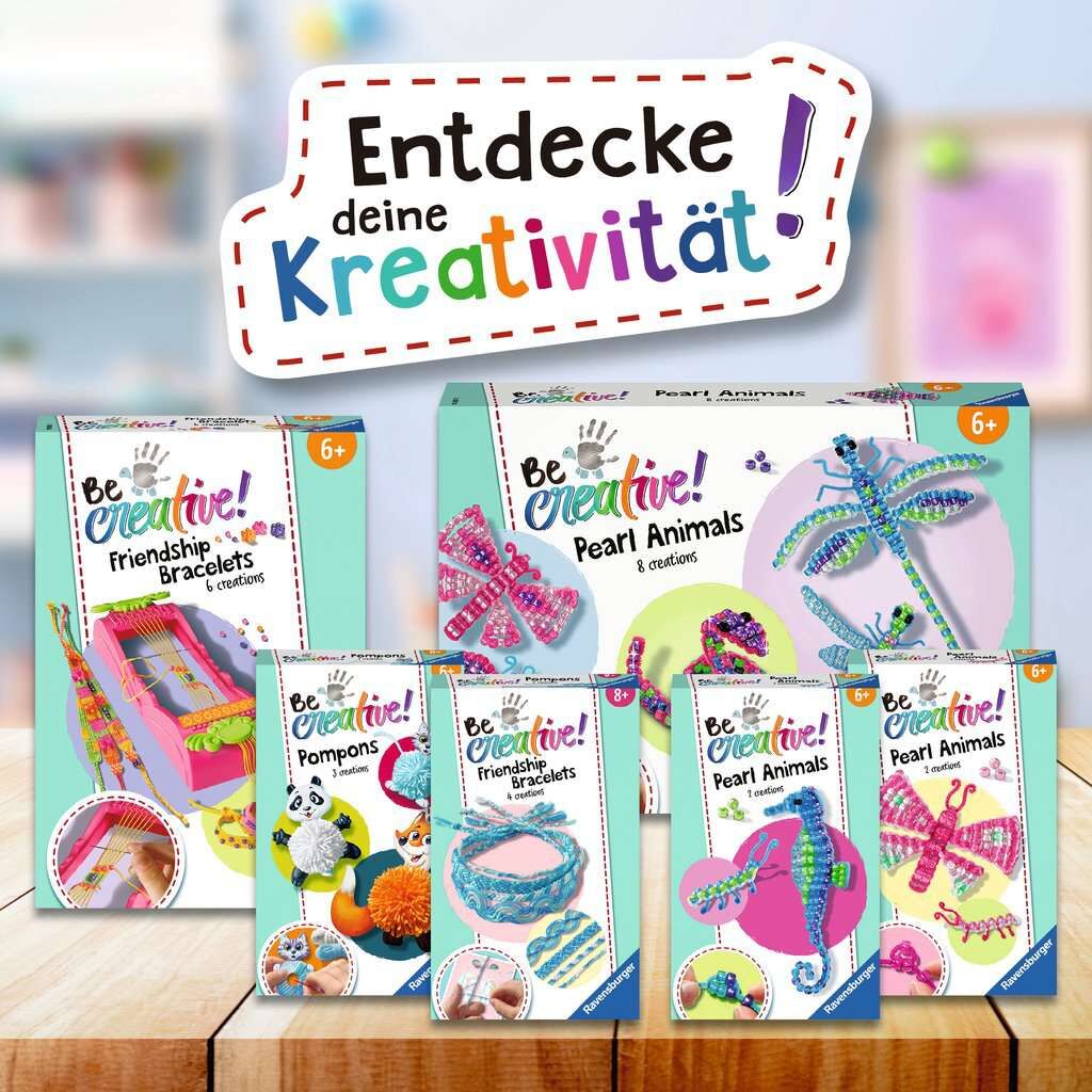 Mit dem Ravensburger Be Creative Set Pompon-Tiere können Kinder ab 6 Jahren aus der im Kreativset enthaltenen Wolle und den Wickelschablonen kugelrunde und kuschelige Tiere basteln. Das Set enthält alle Materialien die für 3 Pompon-Tiere benötigt werden. Einfa...