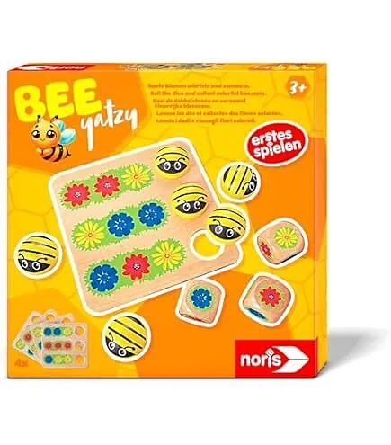 bunte Blumen würfeln und kombinieren, Spielspaß mit süßen Holzbienen für kleine Yatzy-Fans, BSK, 3J+