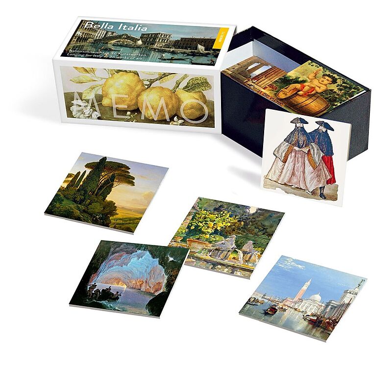 Lebenslust und Kunstgenuss auf Goethes Spuren: Spielerisch gilt es nicht nur Orte wie Florenz, Rom, Neapel oder Capri zu entdecken, sondern auch ganz unterschiedliche künstlerische Sichtweisen auf Italien. In 36 Kärtchen entführt das Memo auf eine Grand Tour d...