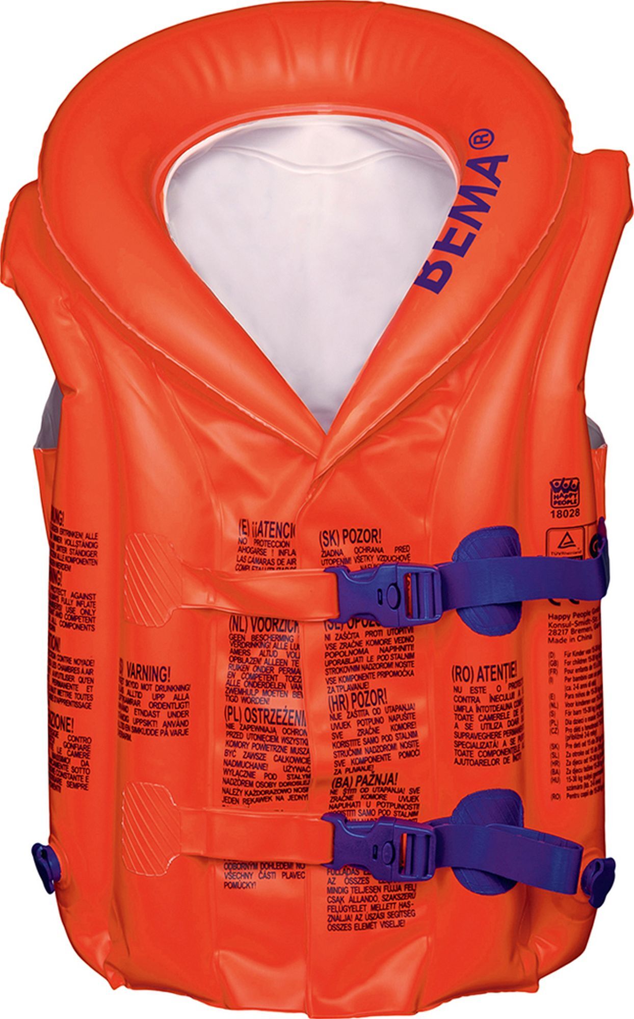 BEMA® aufblasbare Schwimmlernhilfe (Schwimmweste), Farbe orange, für Kinder von 2-6 Jahren, Gewicht: 15 - 30 Kg. Mit Sicherheitsverschlüssen.