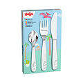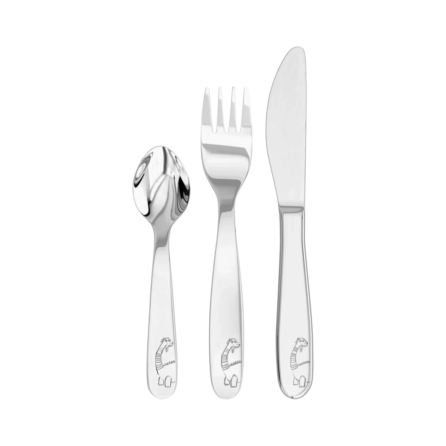 Inhalt: Messer, Gabel, Löffel. Material: Edelstahl. Messer Länge 16.5cm, Gabel Länge 15cm, Löffel Länge 12.3cm