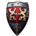 BestSaller 1164 - Ritterschild Holz, 49x32cm, mit Löwen Motiv mit Ledergriff