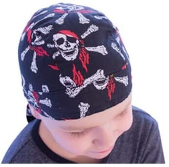 Piraten-Bandana mit Totenköpfen, schwarz/weiß/rot für Kinder, 100% Baumwolle.