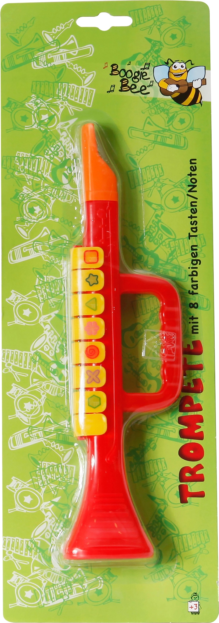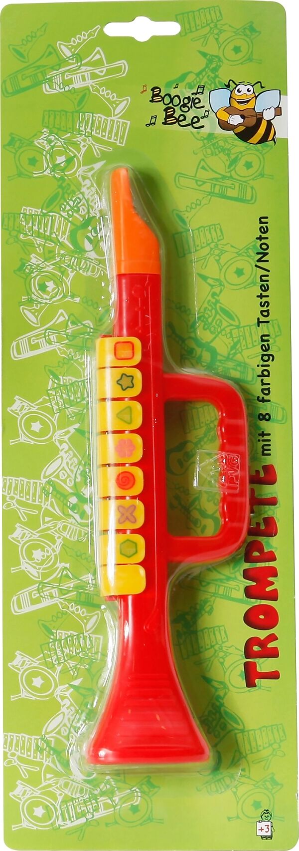 Boogie Bee Trompete in Rot mit 8-farbigen Tasten/Noten. Maße ca. 27x7,5x3,5 cm. Für Kinder ab 3 Jahren.