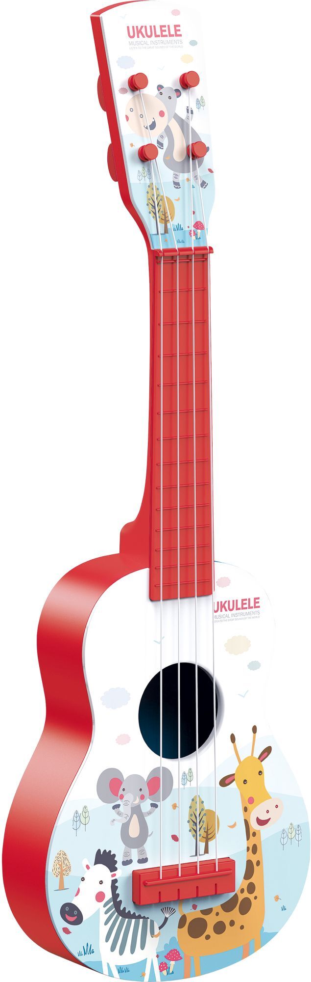 Boogie Bee Ukulele mit 4 Saiten. Aus hochwertigem Kunststoff. Maße ca. 14x4x40 cm. Für Kinder ab 3 Jahren.