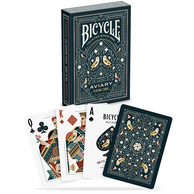 Die Bicycle® Aviary-Spielkarten sind ein wunderschönes, mit aufwändigen Illustrationen rund um die Vogelwelt gestaltetes Kartendeck. Sowohl die Bildkarten als auch die Kartenrückseiten sind individuell und in thematisch angepassten Farben designt. Das Set enth...