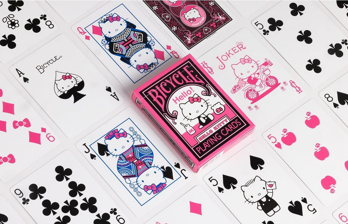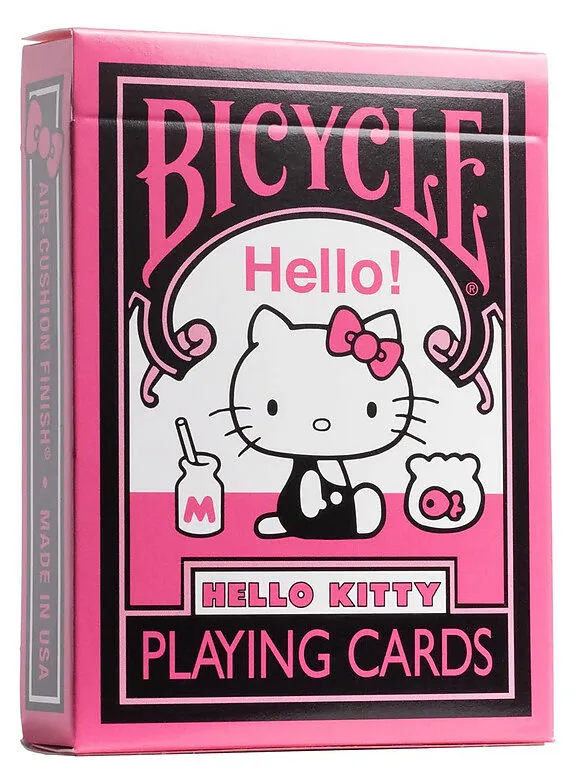 Alles ist besser in Pink! Egal, ob ihr schon lange Fan seid oder einfach nur die zeitlose Niedlichkeit von jedermanns Lieblingsmädchen schätzt - die Bicycle Hello Kitty Spielkarten in Schwarz und Pink verleihen eurer nächsten Kartenrunde bezaubernden Charme. M...