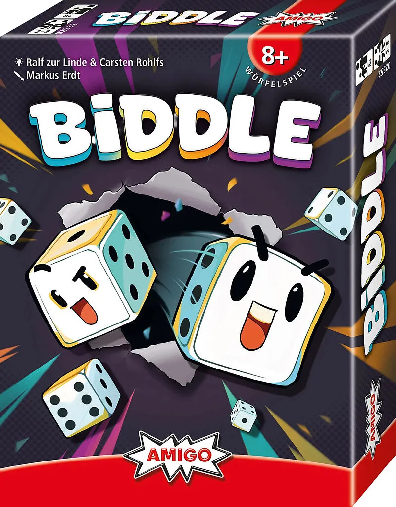 Biddle Wetten, würfeln, Daumen drücken! Alle sechs Würfel müssen einen höheren Wert als Vier zeigen? Das klappt mit sechs Würfen! Oder auch mit fünf - oder weniger? Die Mitspielenden unterbieten sich gegenseitig bis zwei Teams entstanden sind: Ein Team setzt d...