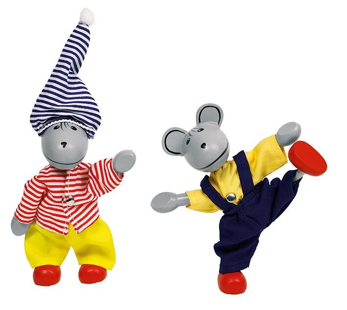 Mausens Klamottenkiste. Mit 2 biegsamen Holzmäusen und 8 kompletten "Klamotten-Sets". Gut verpackt in der Original-Holzkiste. Diese kleinen Nager lassen sich gut an-, aus- und umziehen. Druckknöpfe an den Kleidern zur Schulung der Motorik. Angezogen,...