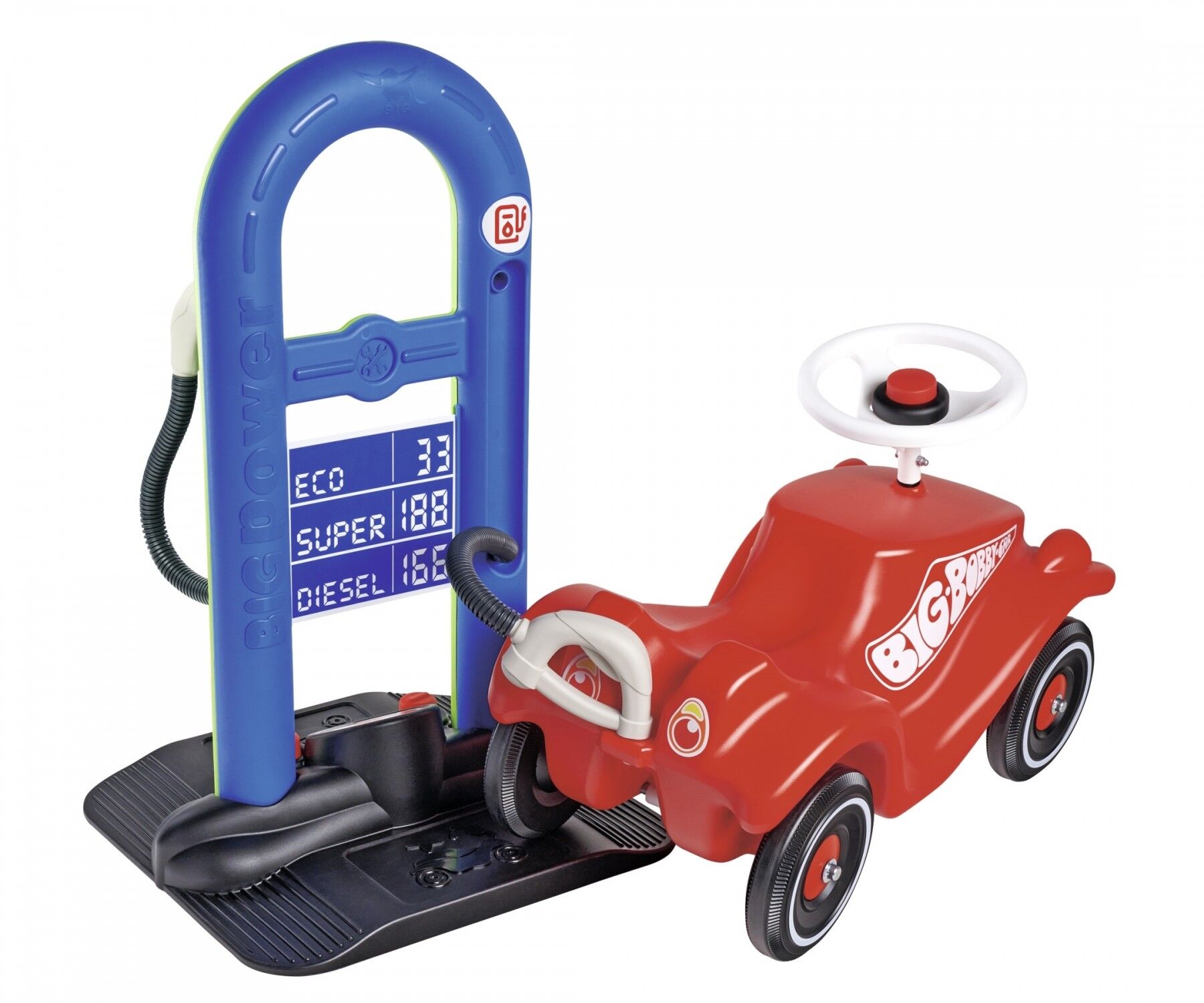 2-in-1 Tank- und Service-Station für das Bobby Car! - Maße: 41 x 38 x 63,5 cm - Artikelgröße montiert (L x B x H): 40 x 37 x 67 cm- kompatibel mit allen gängigen BIG Bobby Cars mit Anhängerkupplung (Classic, Neo, Next) - Altersempfehlung: ab 18 Monate - für In...