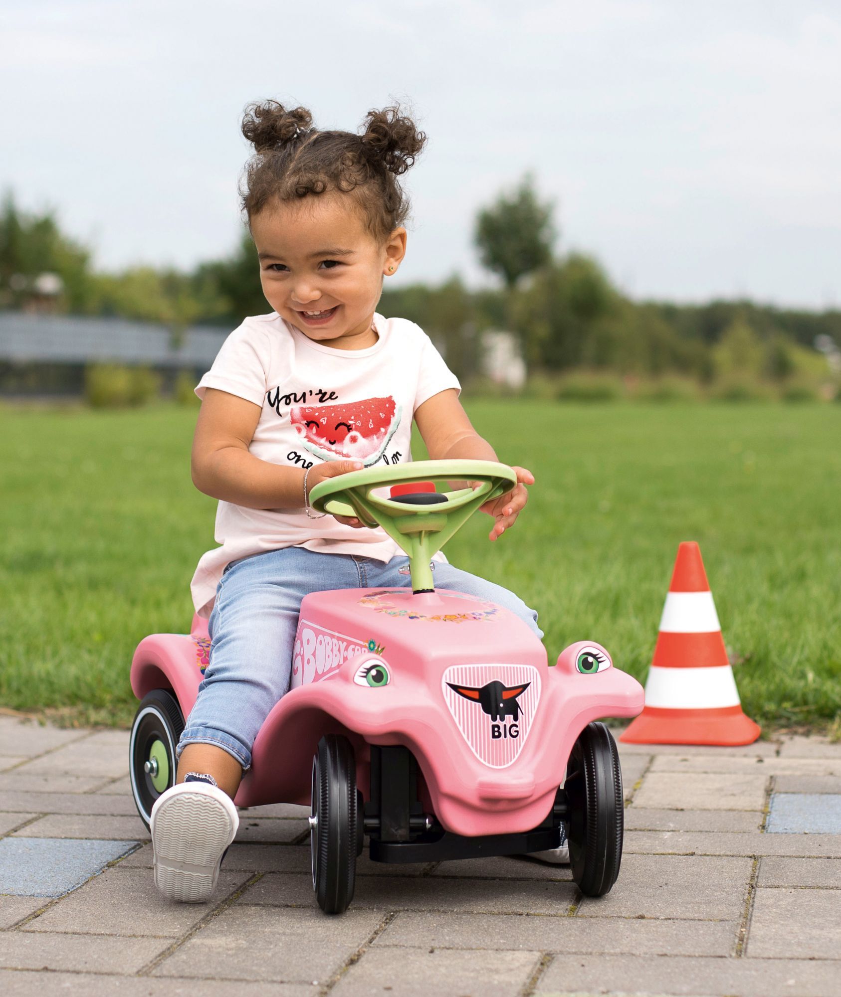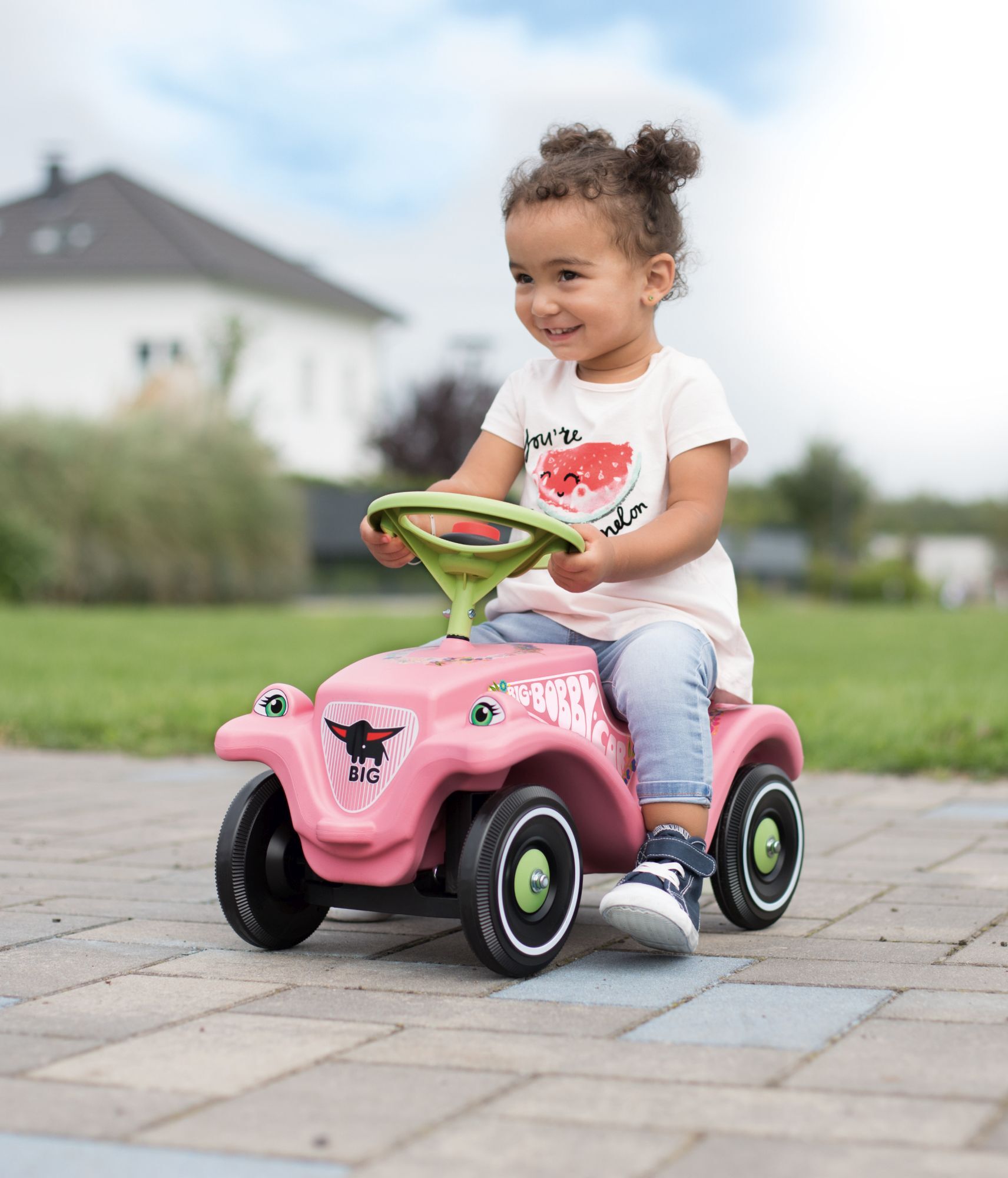 Das BIG-Bobby-Car-Classic Flower ist das perfekte Fahrzeug für alle kleinen Fahranfänger ab 12 Monaten, die weiche Farbtöne und liebliches Design schätzen. Durch seine Karosserie in zartem Rosa in Verbindung mit Felgen und Lenkrad in Pastellgrün sowie der Komb...