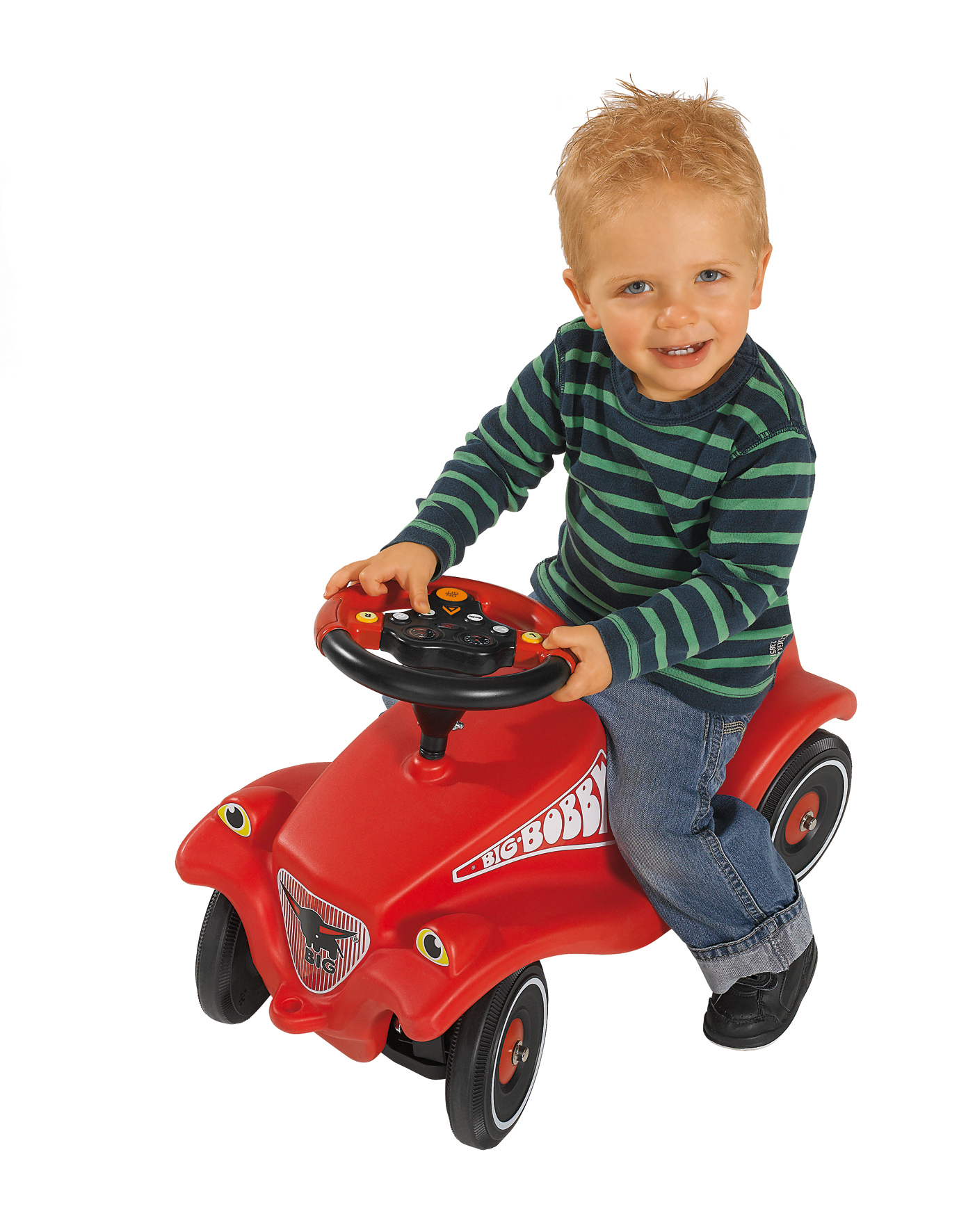 BIG Bobby Car Multi Sound Lenkrad Exklusives Fahrerlebnis erwartet BIG Bobby Car Besitzer bei der Nachrüstung mit dem BIG Multi Sound Wheel. Das griffige Lenkrad gleicht optisch den Racing-Lenkrädern der Formel 1 Fahrzeuge und ist durch seine Farbgestaltung ei...