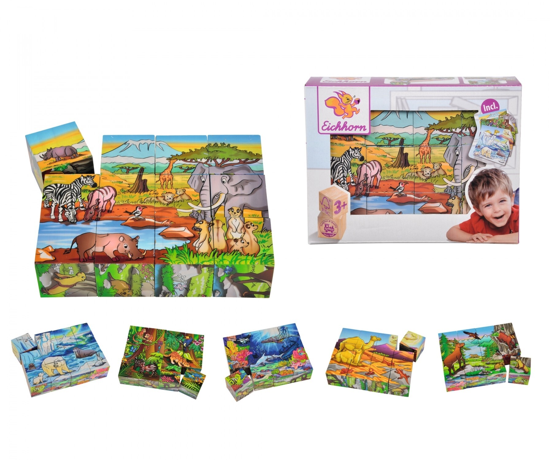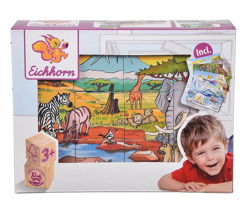 Je nachdem wie man die Steine dreht entsteht mit den Eichhorn Bilderwürfeln eines der 6 Tier-Motive. Es kann ein Bild mit Tieren aus Afrika, dem Dschungel, den Bergen, der Wüste, dem Meer oder dem Polarkreis gelegt werden. Ein Motivbogen wird auf den Tisch gel...