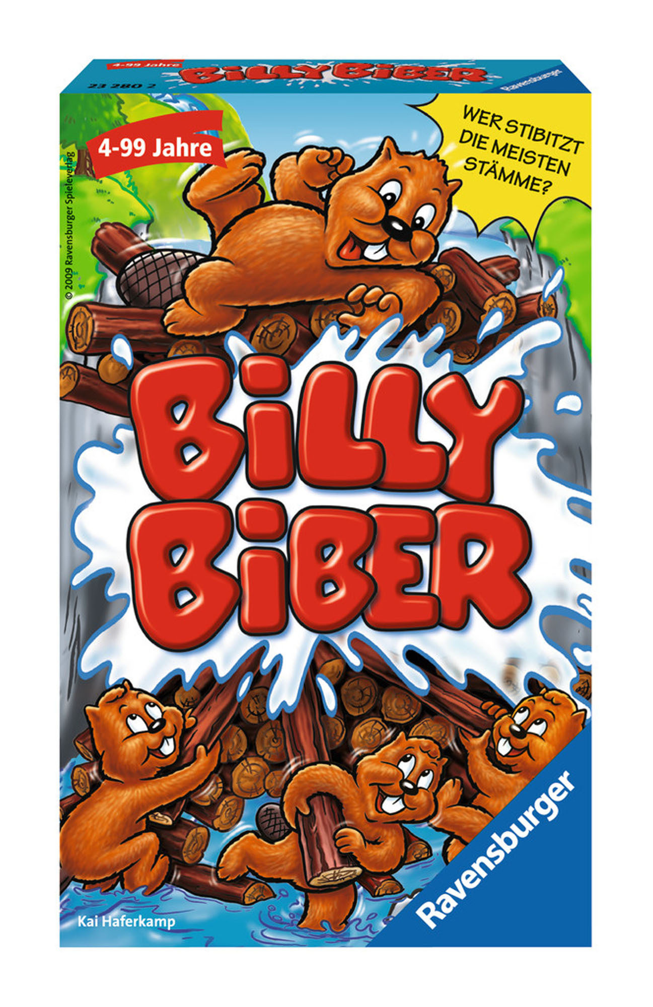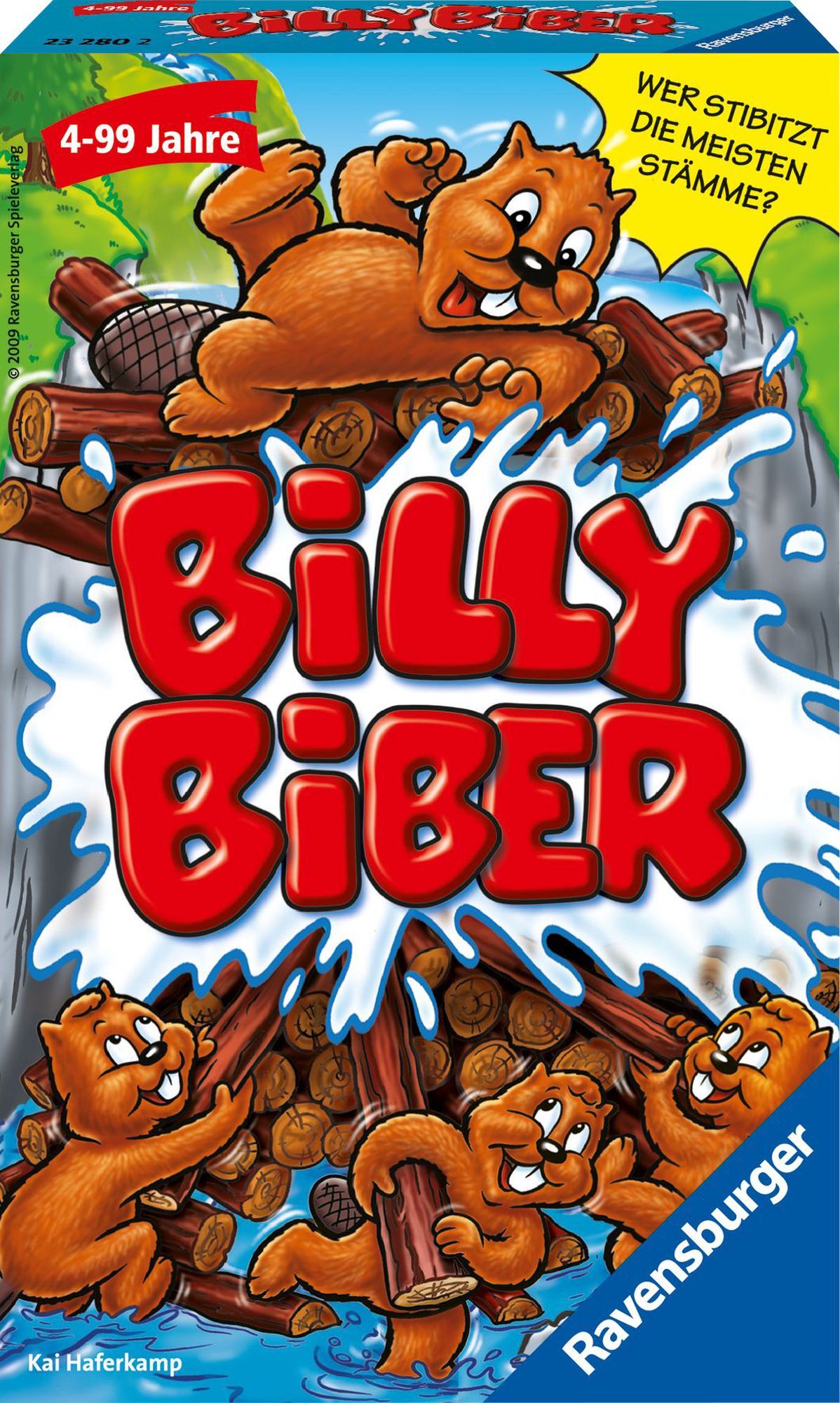 Wer stibitzt die meisten Stämme? Billy, pass auf! Immer wieder schieben die frechen Biberkinder Holzstämme aus dem Stapel. Manchmal gelingt es, doch wenn es Billy merkt, sind Meckerchips fällig. Wer stibitzt die meisten Stämme? Inhalt: 1 Flusslandschaft, 1 Bib...