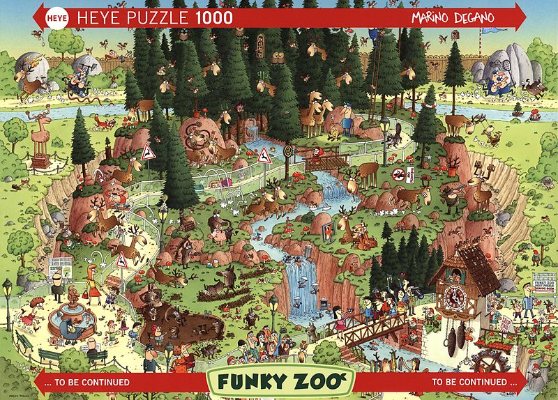Entdecken Sie die schöne Welt der Puzzles! Einfach genial, Marino Deganos verrückter Zoo! Alle Motive passen aneinander, sowohl links als auch rechts. So kann sich jeder seinen Tierpark selbst zusammenstellen. 1000-teilig jede Menge originelle Motive anspreche...